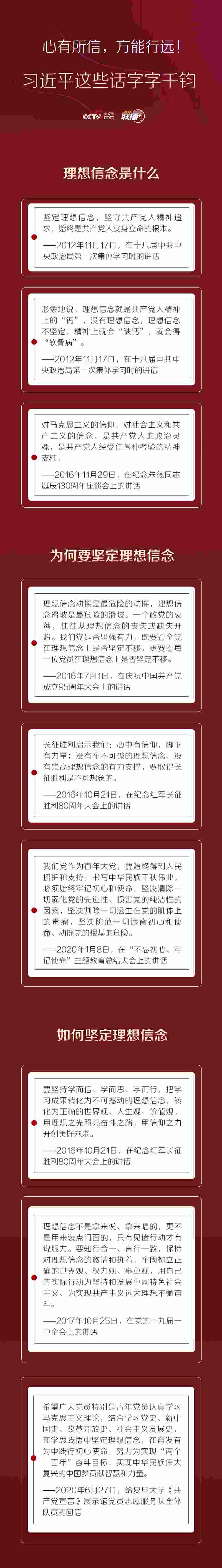 聯(lián)播+“心有所信,方能行遠(yuǎn)。面向未來(lái),走好新時(shí)代的長(zhǎng)征路,我們更需要堅(jiān)定理想信念、矢志拼搏奮斗?!苯?,習(xí)近平總書(shū)記給復(fù)旦大學(xué)《共產(chǎn)黨宣言》展示館黨員志愿服務(wù)隊(duì)全體隊(duì)員回信。