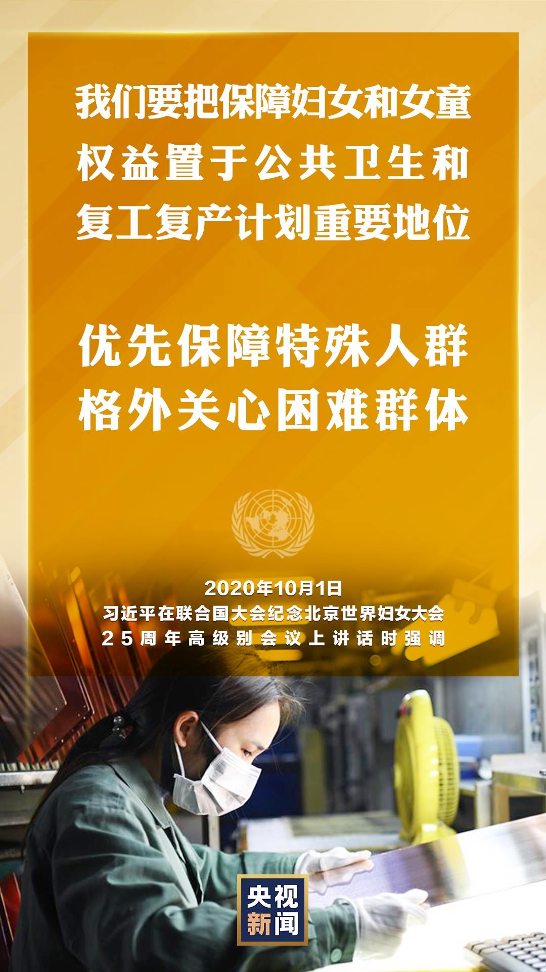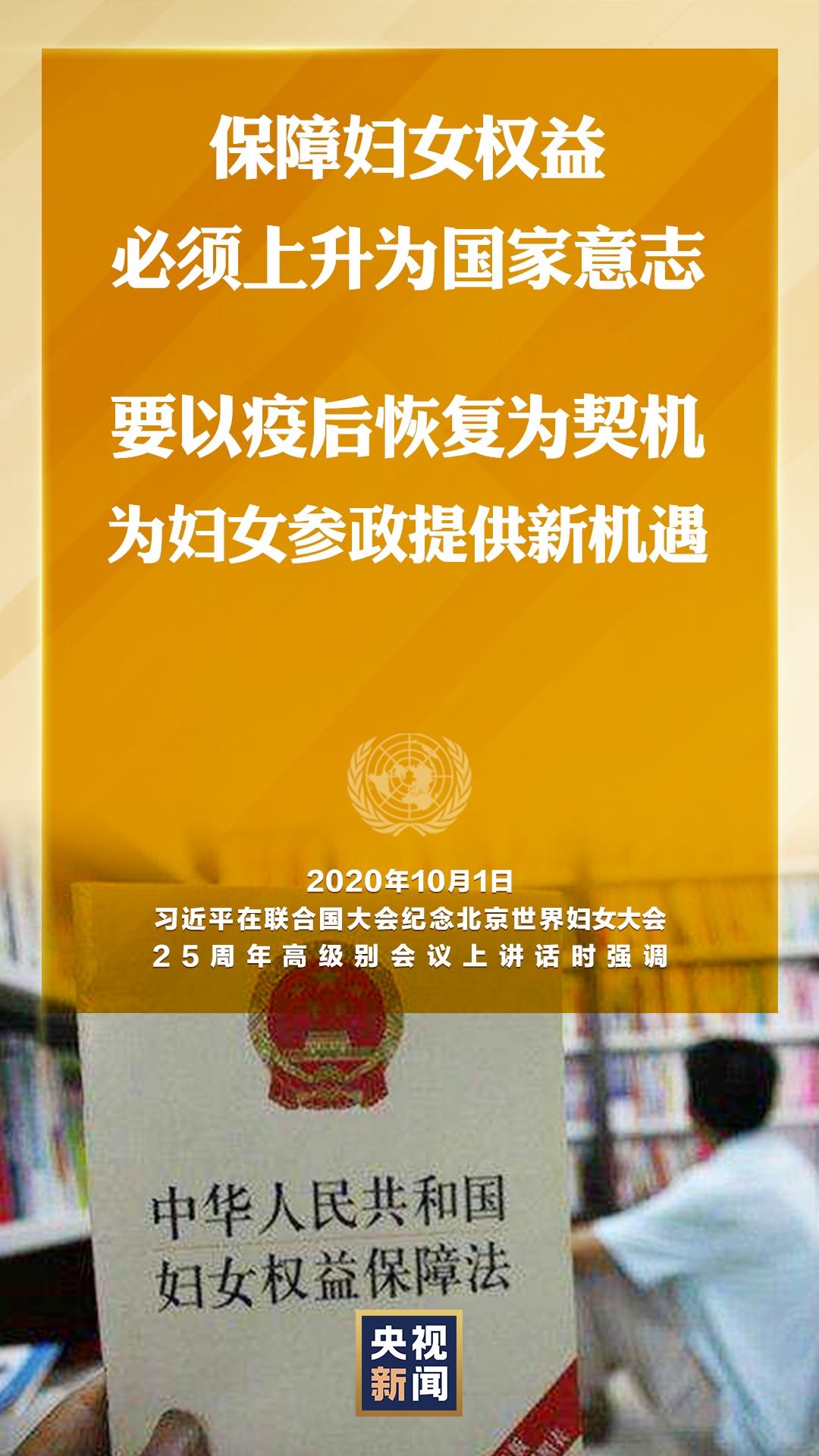 國家主席習近平10月1日在聯(lián)合國大會紀念北京世界婦女大會25周年高級別會議上通過視頻發(fā)表重要講話。就如何切實保護婦女權益,習近平提出中國主張。