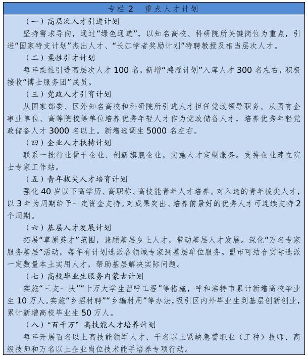 深入落實(shí)人才強(qiáng)國(guó)戰(zhàn)略,聚焦國(guó)家和自治區(qū)重大戰(zhàn)略、重大工程項(xiàng)目和重點(diǎn)產(chǎn)業(yè)領(lǐng)域,銜接國(guó)家重大人才工程,健全人才培養(yǎng)、引進(jìn)、使用、評(píng)價(jià)、流動(dòng)和激勵(lì)機(jī)制,強(qiáng)化用人單位主體責(zé)任,激發(fā)人才創(chuàng)新活力。到2025年,全區(qū)人才資源總量達(dá)到350萬(wàn)人。