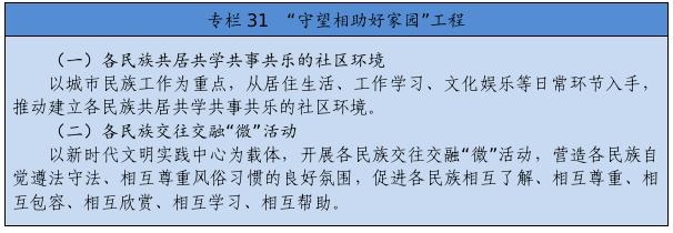 從居住生活、工作學(xué)習(xí)、文化娛樂(lè)等日常環(huán)節(jié)入手,積極營(yíng)造各民族共居共學(xué)共事共樂(lè)的社會(huì)條件,開(kāi)展各族群眾交流、培養(yǎng)、融洽感情的工作,形成密不可分的共同體。鼓勵(lì)各族群眾在民族地區(qū)和其他地區(qū)、城市和鄉(xiāng)村有序流動(dòng)。做好城市民族工作,讓城市更好接納少數(shù)民族群眾、少數(shù)民族群眾更好融入城市社區(qū)。大力推進(jìn)農(nóng)村牧區(qū)現(xiàn)代化,加快補(bǔ)齊基礎(chǔ)設(shè)施和基本公共服務(wù)短板,不斷滿(mǎn)足各族群眾的美好生活需要,確保實(shí)現(xiàn)現(xiàn)代化一個(gè)民族也不能少。