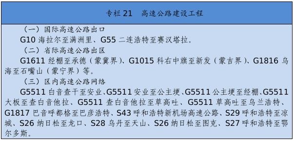 基礎(chǔ)設(shè)施保障更加有力。交通運(yùn)輸、能源外送通道和引調(diào)水骨干工程接續(xù)落地。綜合交通運(yùn)輸體系基本形成,接入全國(guó)高鐵網(wǎng),呼和浩特至張家口高速鐵路,通遼、赤峰至京沈高速鐵路連接線(xiàn),浩勒?qǐng)?bào)吉至吉安鐵路順利建成,建成高速鐵路404公里。全區(qū)103個(gè)旗縣(市區(qū))全部通高等級(jí)公路,京新高速臨河至哈密、丹錫高速錫林浩特至巴林右旗等高速公路通車(chē)運(yùn)營(yíng),所有鄉(xiāng)鎮(zhèn)(蘇木)和具備條件的建制村通硬化路,建成“四好農(nóng)村路”6.6萬(wàn)公里,綜合交通網(wǎng)總里程達(dá)到22.5萬(wàn)公里。呼和浩特新機(jī)場(chǎng)開(kāi)工建設(shè),呼倫貝爾、包頭、通遼等機(jī)場(chǎng)完成改擴(kuò)建。新建通用機(jī)場(chǎng)15個(gè),民用機(jī)場(chǎng)達(dá)到40個(gè)。黃河內(nèi)蒙古段二期防洪、引綽濟(jì)遼、東臺(tái)子水庫(kù)等重大水利工程建設(shè)順利推進(jìn)。全區(qū)5G基站突破1萬(wàn)個(gè)。建成5條特高壓外送電通道。克什克騰至北京煤制氣管道投入運(yùn)營(yíng)。呼和浩特地鐵1、2號(hào)線(xiàn)一期工程建成運(yùn)營(yíng)。