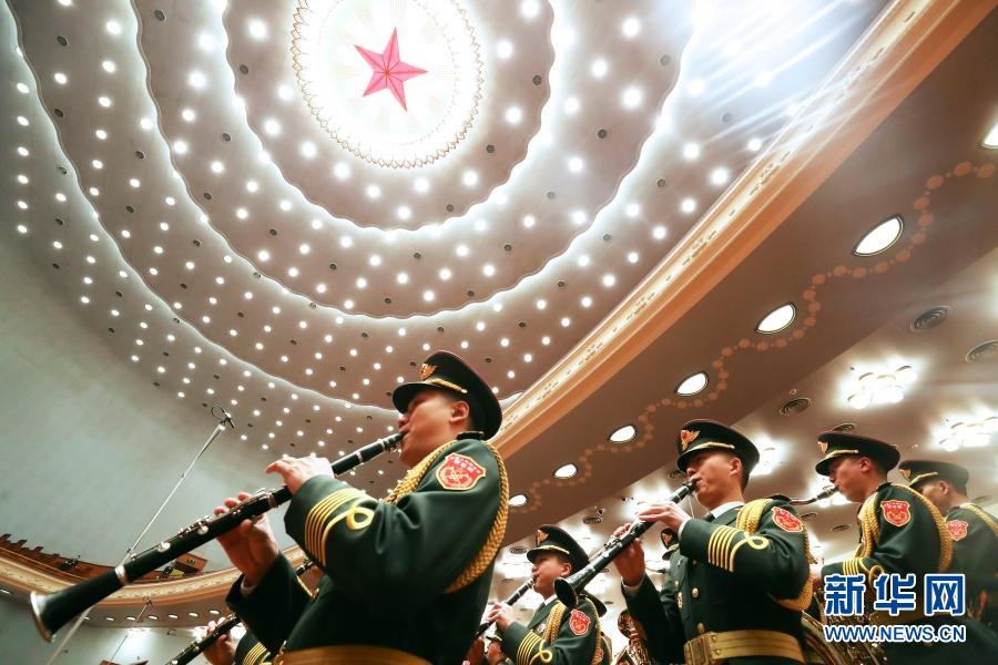 3月5日,第十三屆全國人民代表大會第四次會議在北京人民大會堂開幕。這是軍樂團(tuán)在演奏。新華社記者 金良快 攝