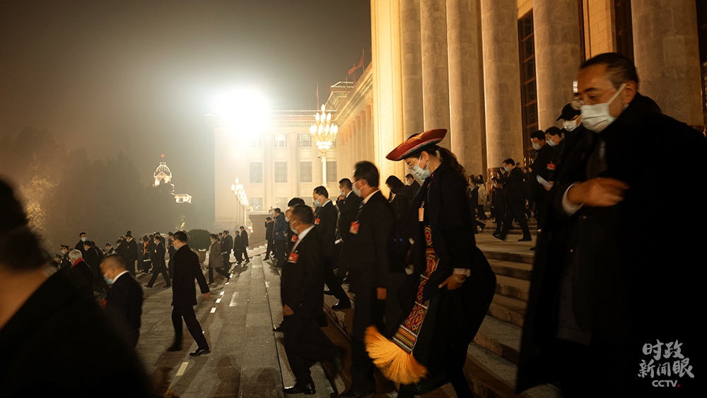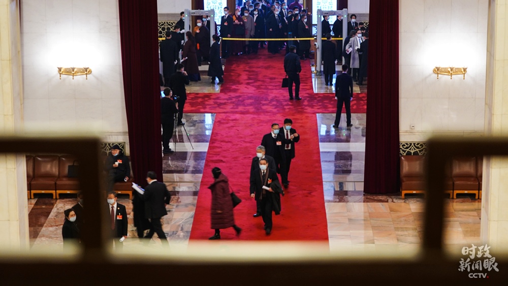 △開幕會(huì)結(jié)束后,委員們離開會(huì)場(chǎng)。(總臺(tái)央視記者程鋮拍攝)