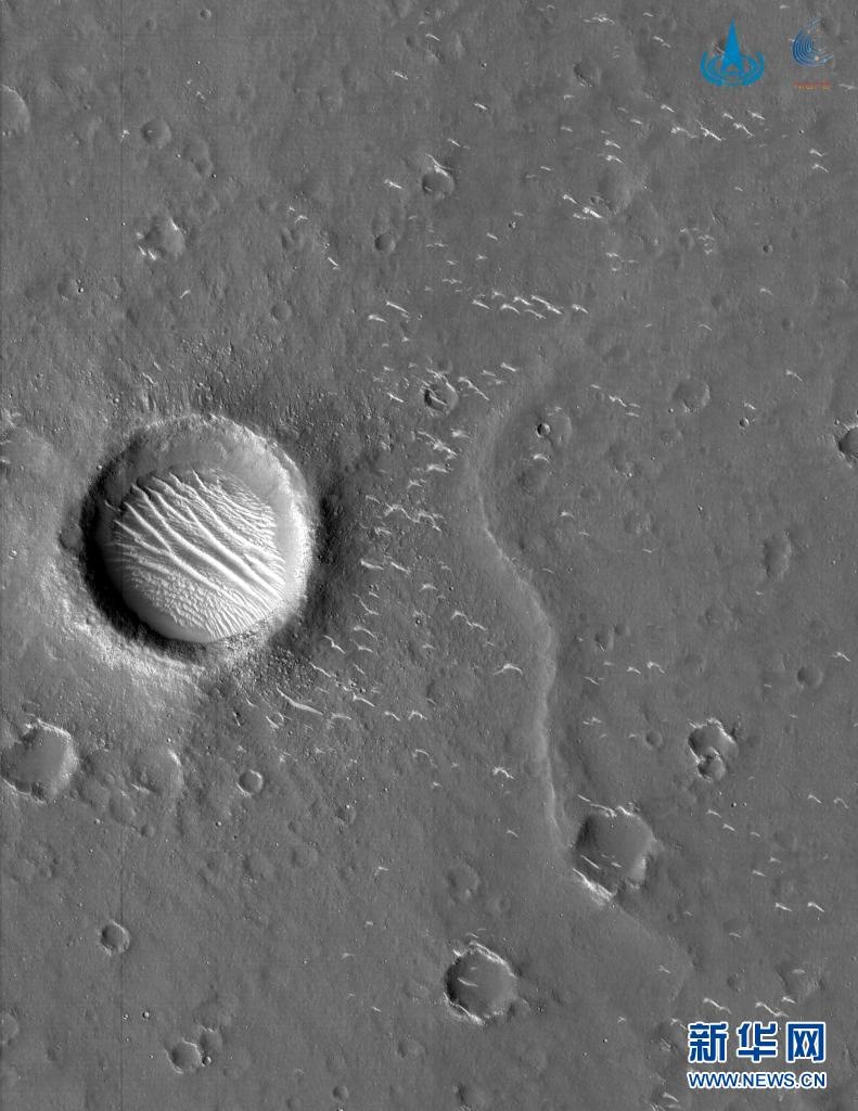 2021年2月5日20時(shí),天問一號(hào)探測器發(fā)動(dòng)機(jī)點(diǎn)火工作,順利完成地火轉(zhuǎn)移段第四次軌道中途修正,以確保按計(jì)劃實(shí)施火星捕獲。國家航天局同步公布了天問一號(hào)此前在距離火星約220萬公里處獲取的首幅火星圖像。新華社發(fā)