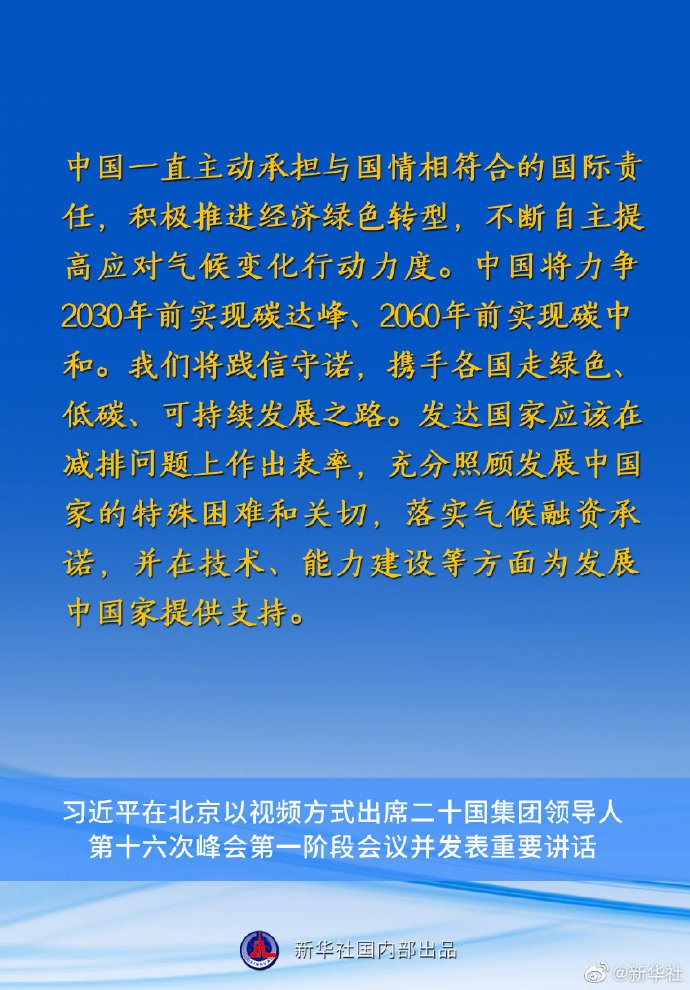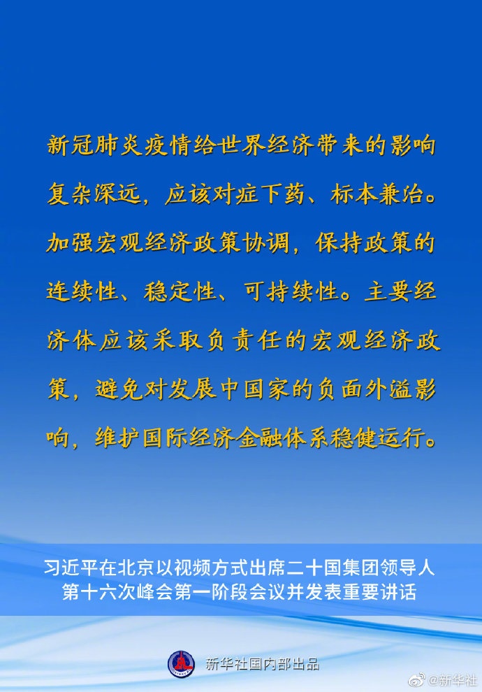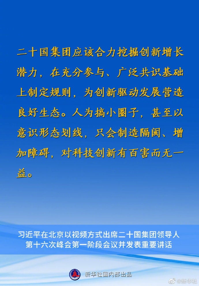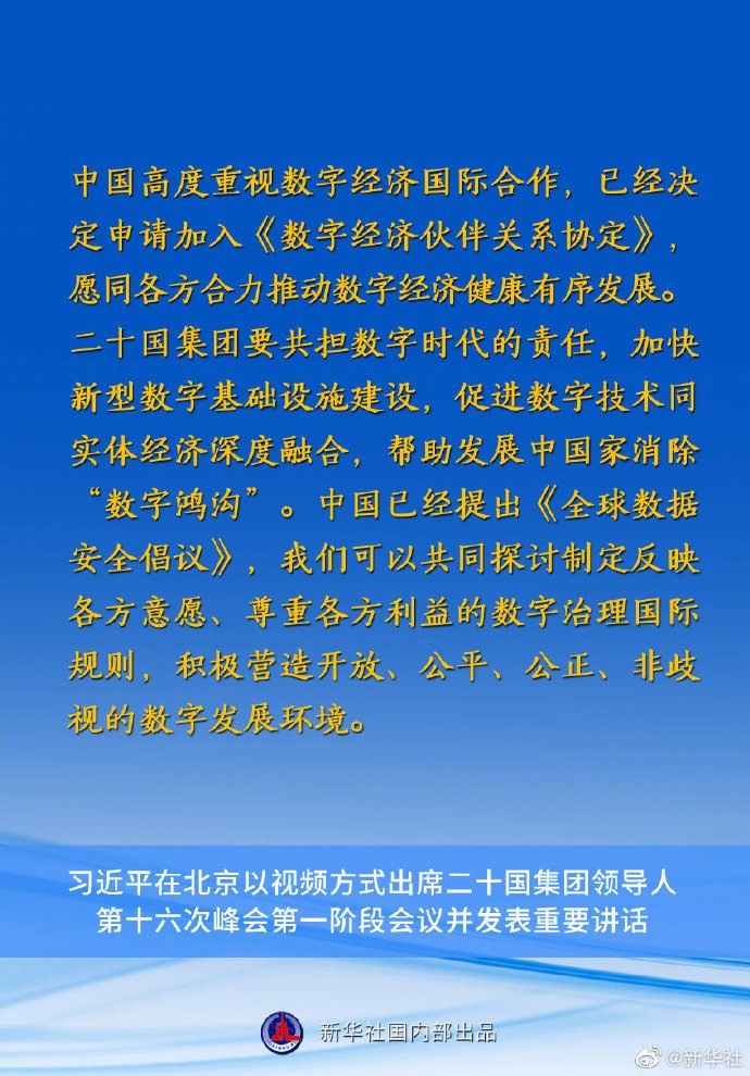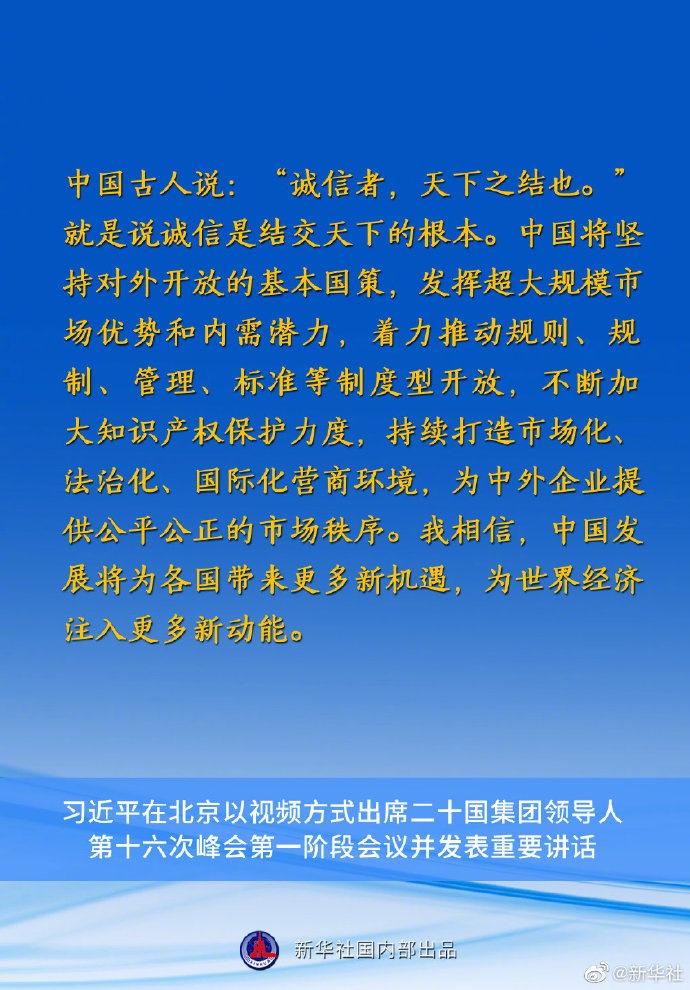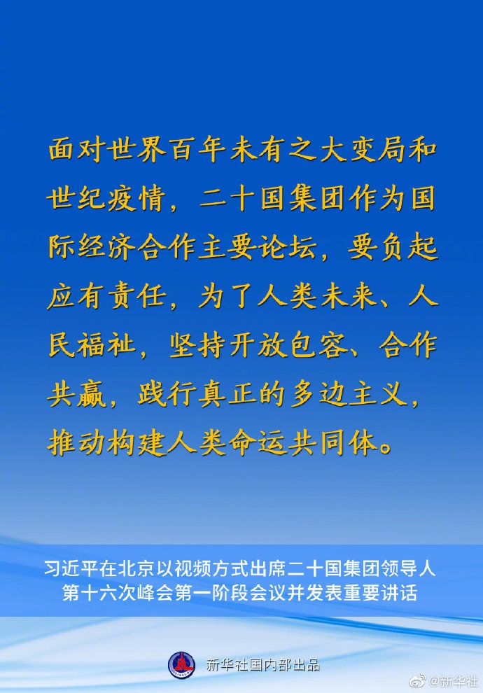 習(xí)近平主席在二十國集團(tuán)領(lǐng)導(dǎo)人第十六次峰會(huì)第一階段會(huì)議上的重要講話要點(diǎn)速覽