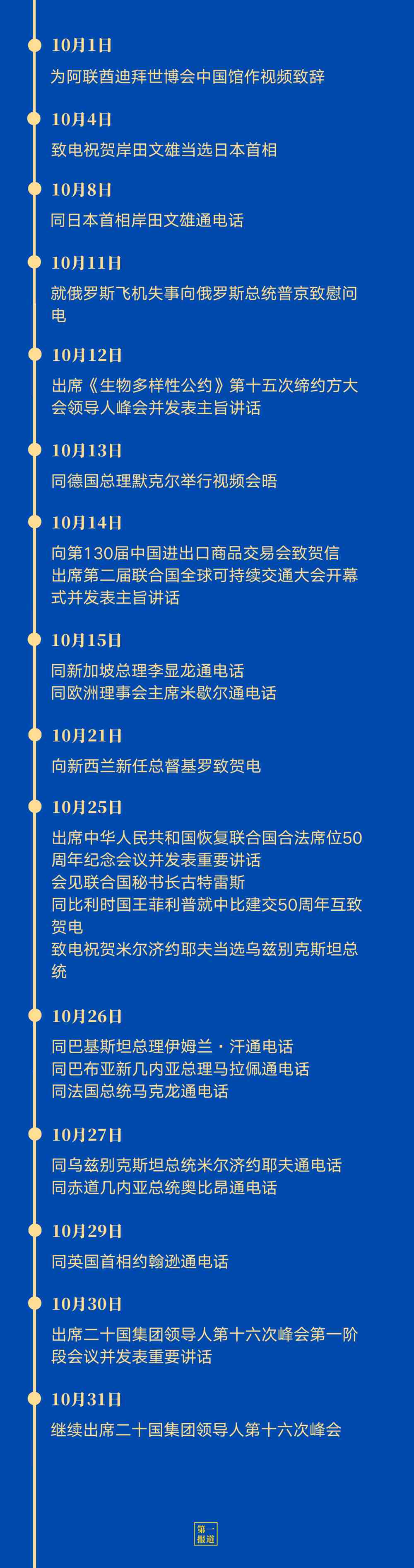 面對(duì)更多不確定性,尤需凝心聚力應(yīng)對(duì)共同挑戰(zhàn)。10月,中國(guó)元首外交活動(dòng)頻密,內(nèi)容豐富——