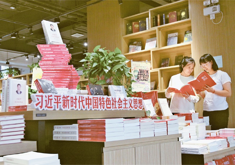 黨確立習近平同志黨中央的核心、全黨的核心地位,確立習近平新時代中國特色社會主義思想的指導地位,反映了全黨全軍全國各族人民共同心愿,對新時代黨和國家事業(yè)發(fā)展、對推進中華民族偉大復興歷史進程具有決定性意義。圖為2021年10月4日,河南省焦作市博愛縣新華書店里,讀者在閱讀習近平新時代中國特色社會主義思想相關書籍。 中新社發(fā) 程全/攝