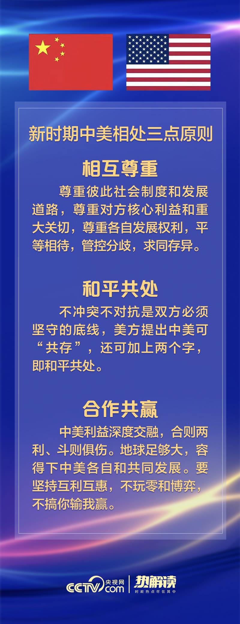對于中美在一些問題上的不同看法,習(xí)主席反復(fù)強(qiáng)調(diào),要聚焦合作、管控分歧。增多接觸、加強(qiáng)溝通,有助于準(zhǔn)確了解彼此的政策意圖,避免誤解誤判。