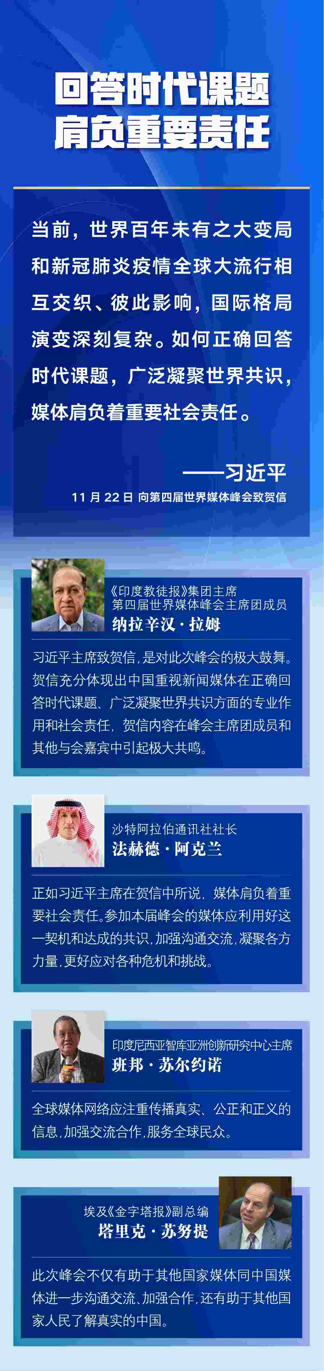 第四屆世界媒體峰會(huì)22日在北京舉行,國(guó)家主席習(xí)近平向峰會(huì)致賀信。