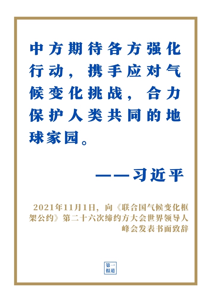 ——“應(yīng)對(duì)氣候變化等全球性挑戰(zhàn),多邊主義是良方。”在《聯(lián)合國(guó)氣候變化框架公約》第二十六次締約方大會(huì)世界領(lǐng)導(dǎo)人峰會(huì)上,習(xí)近平主席強(qiáng)調(diào)“維護(hù)多邊共識(shí)”。
