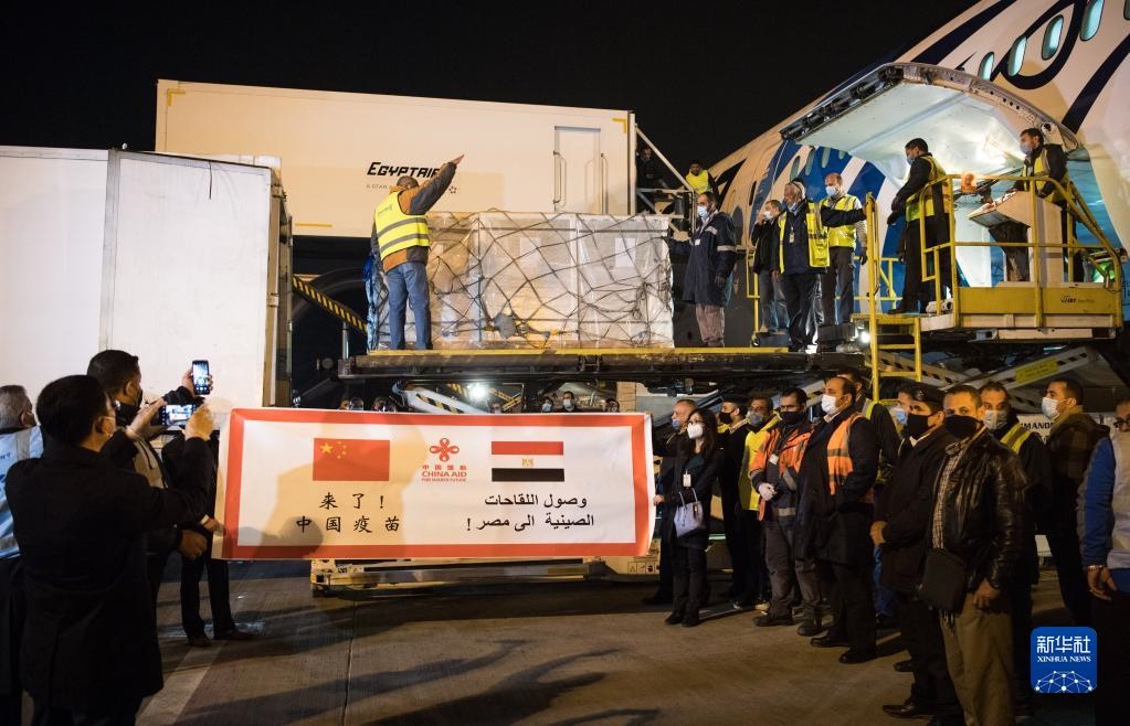 2021年2月23日,中國(guó)援助埃及的首批新冠疫苗抵達(dá)開(kāi)羅國(guó)際機(jī)場(chǎng)。新華社記者 鄔惠我 攝