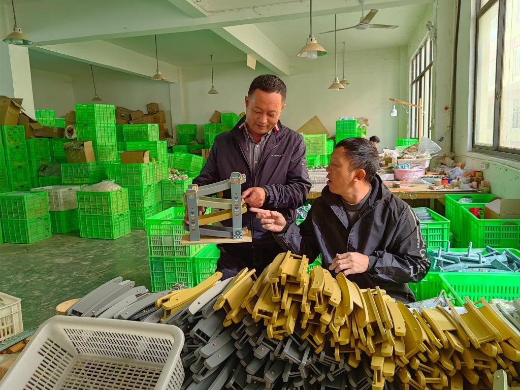 在廣西柳州市融水苗族自治縣良寨鄉(xiāng)培洞村,紀檢監(jiān)察干部(右一、二、三)在檢查扶貧道路施工情況(2019年11月5日攝)。新華社記者 黃孝邦 攝