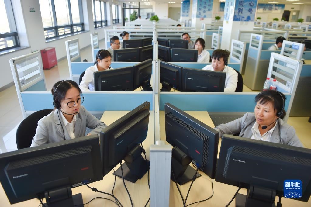 在位于北京亦莊的12345市民熱線話務(wù)大廳,工作人員接聽熱線電話(2019年11月13日攝)。新華社記者彭子洋攝