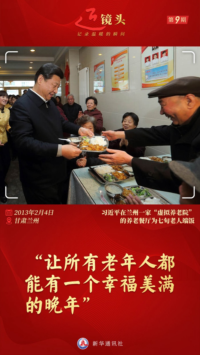 2013年2月,習(xí)近平總書記曾來到這里,詳細(xì)了解虛擬養(yǎng)老院的運(yùn)行情況?!帮埩繅虿粔颍俊薄靶l(wèi)生不衛(wèi)生?”“全市有多少這樣的餐廳?”他一一問來,還端起一盤熱氣騰騰的飯菜,送給就餐的老人,向老人們拜年,祝愿他們新春愉快、身體健康、安享晚年。