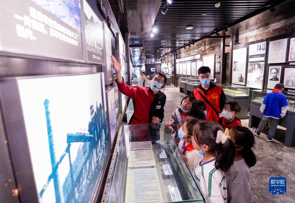 在重慶九龍坡區(qū)重慶建川博物館,30名來自城口縣的留守兒童、困難家庭青少年在共青團(tuán)青年志愿者的陪伴下參觀游覽(2021年2月24日攝)。新華社記者 劉潺
