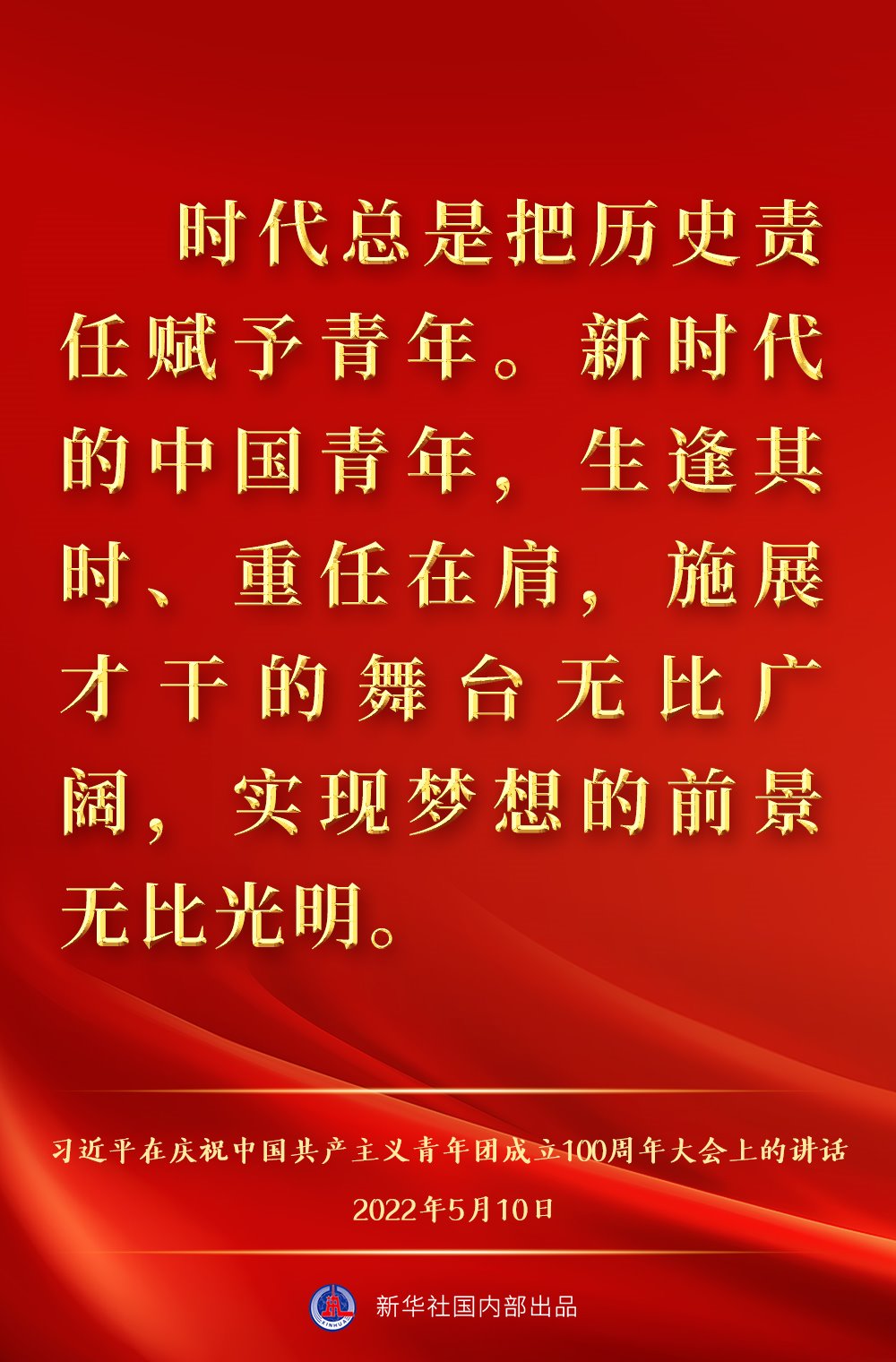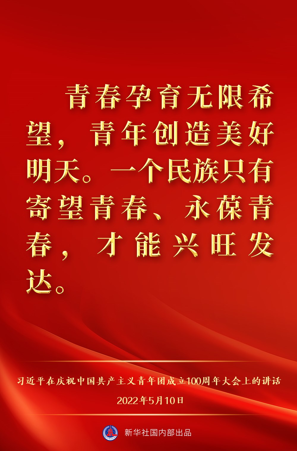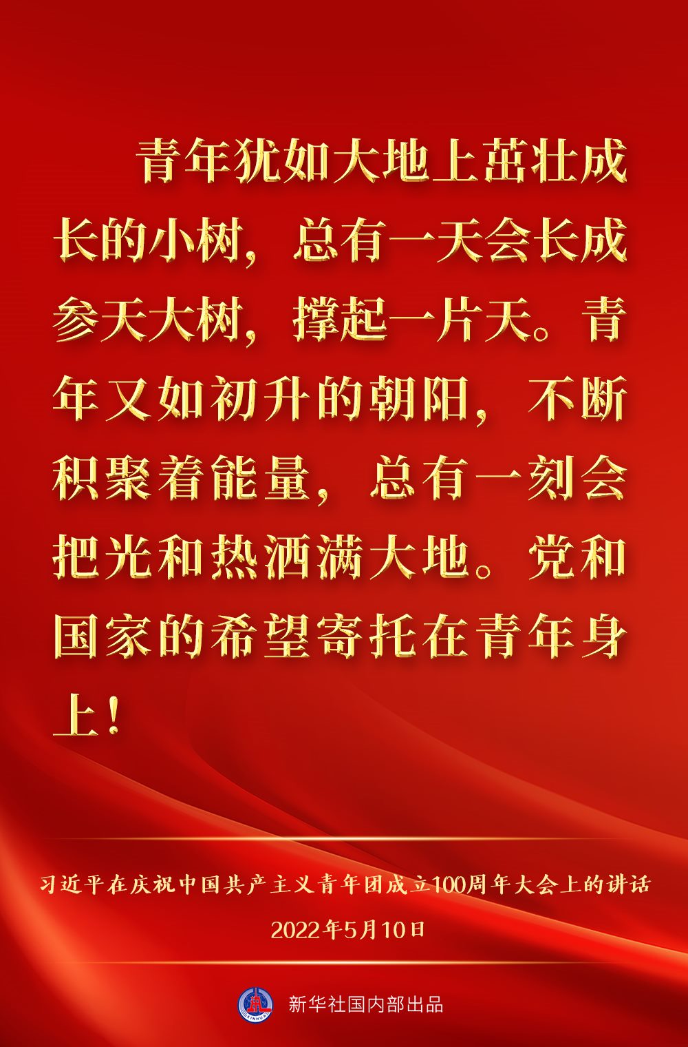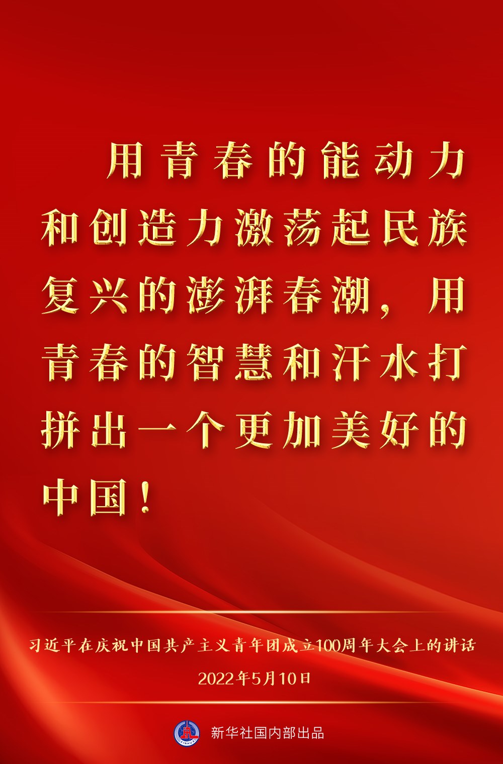 5月10日上午,中共中央總書記、國家主席、中央軍委主席習(xí)近平出席慶祝中國共產(chǎn)主義青年團(tuán)成立100周年大會(huì)并發(fā)表重要講話,一起來看金句。