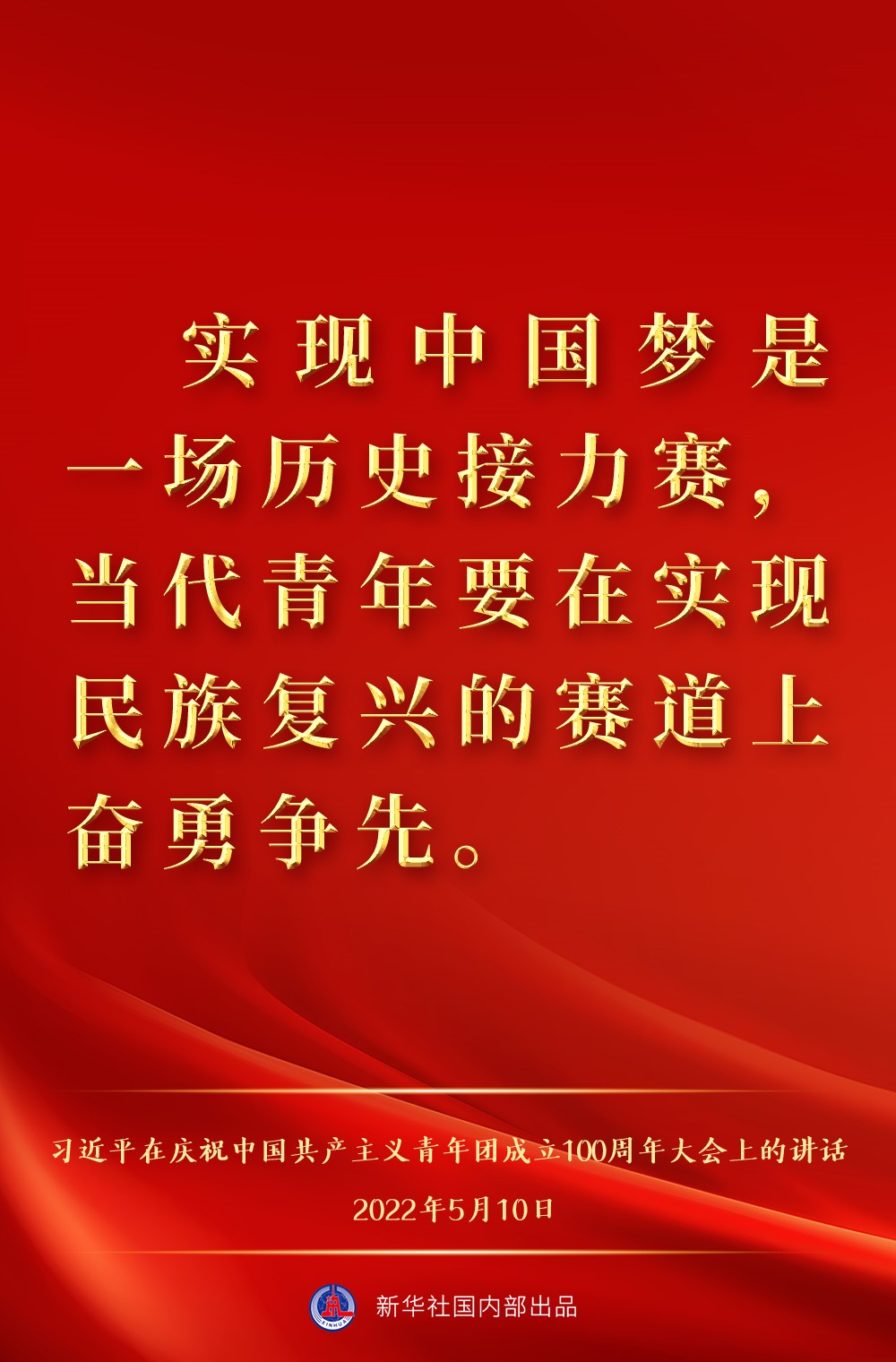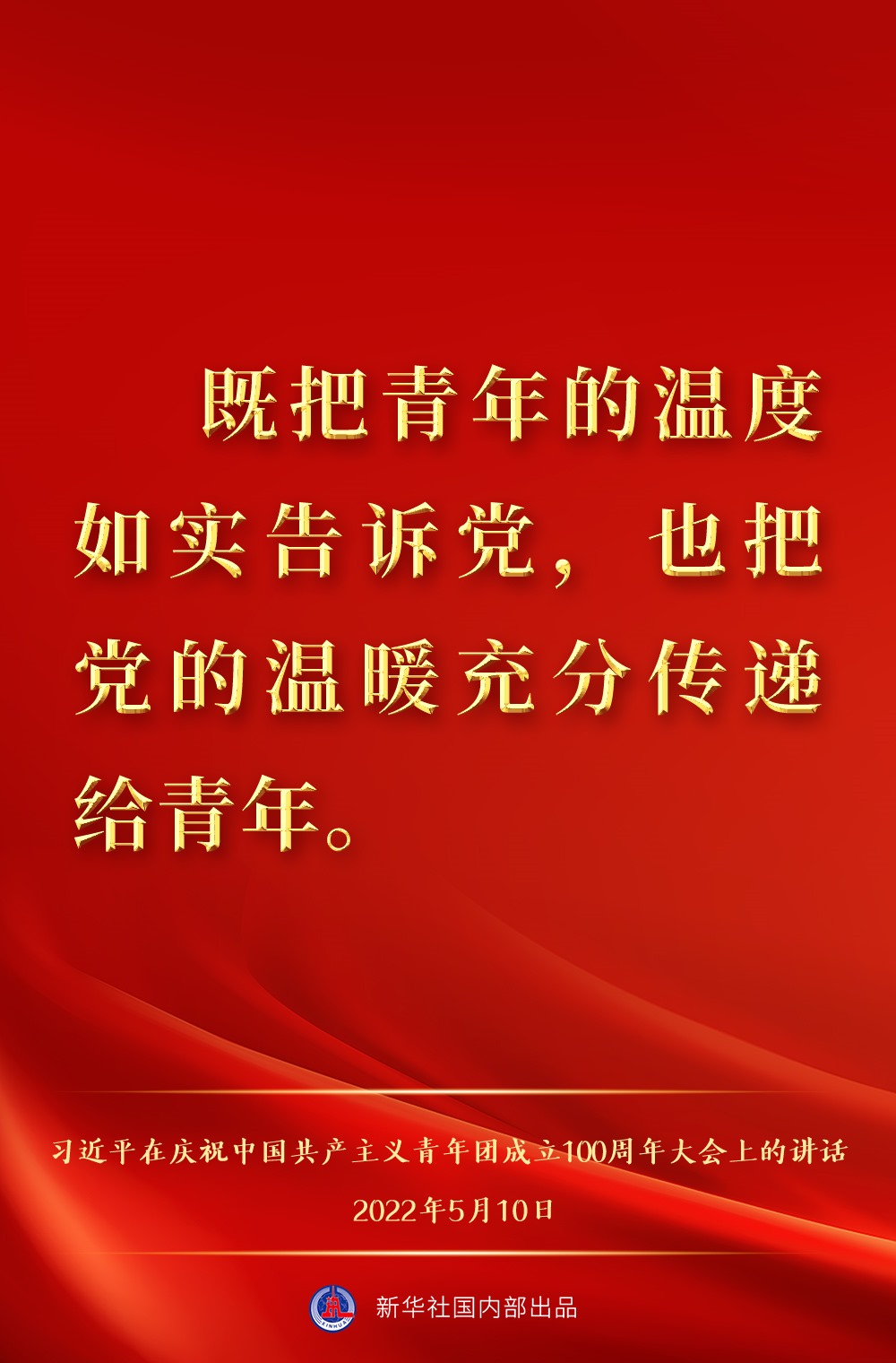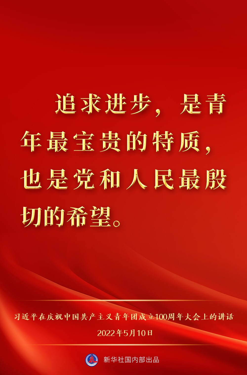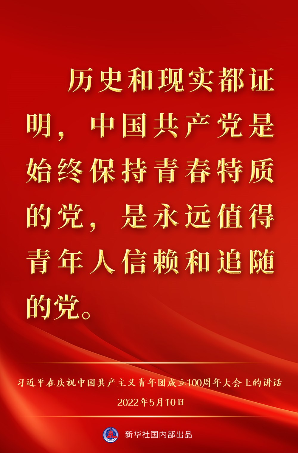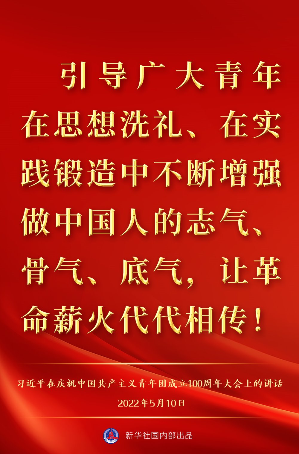 5月10日上午,中共中央總書記、國家主席、中央軍委主席習(xí)近平出席慶祝中國共產(chǎn)主義青年團(tuán)成立100周年大會(huì)并發(fā)表重要講話,一起來看金句。