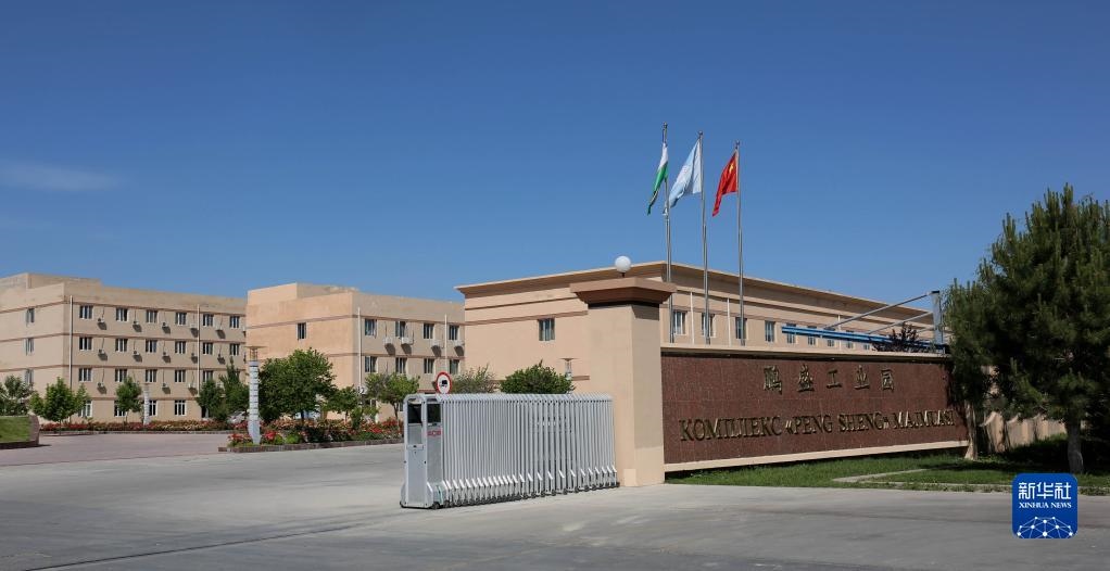 這是2018年5月8日拍攝的烏茲別克斯坦鵬盛工業(yè)園入口。鵬盛工業(yè)園是中國(guó)民營(yíng)企業(yè)直接在烏投資建立的首個(gè)中烏合資工業(yè)園區(qū)。新華社記者周良攝