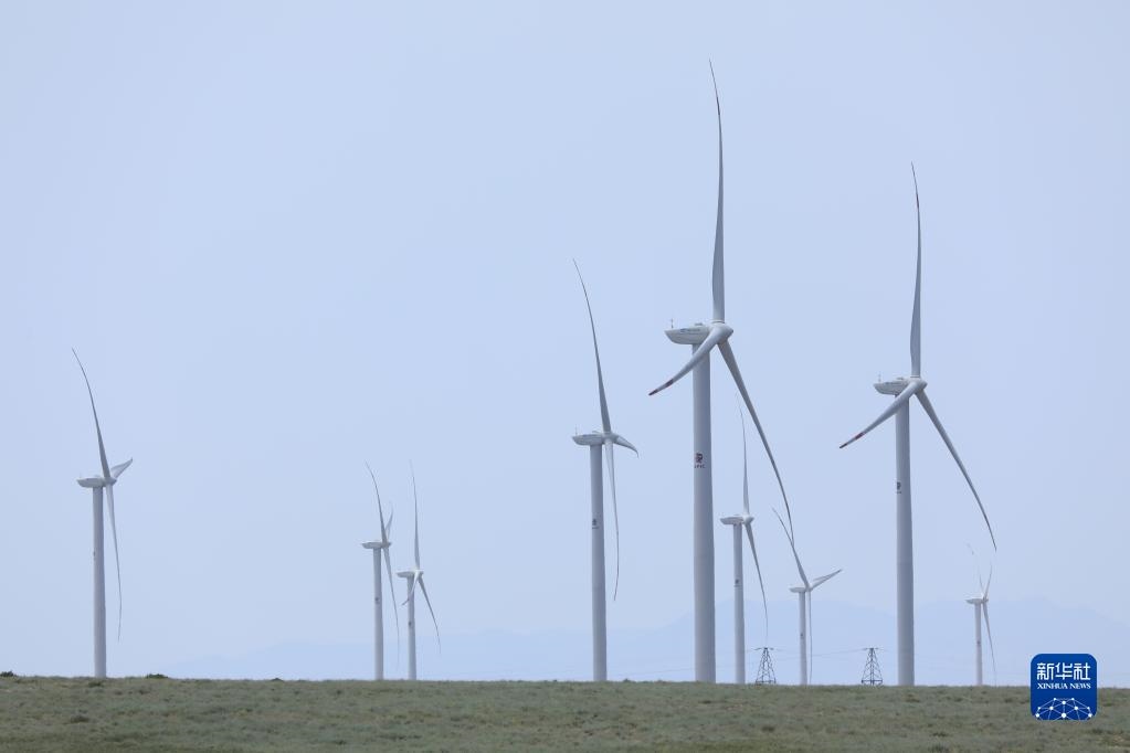 這是2021年5月24日在哈薩克斯坦扎納塔斯拍攝的風(fēng)電場(chǎng)的風(fēng)機(jī)。新華社發(fā)(奧斯潘諾夫攝)