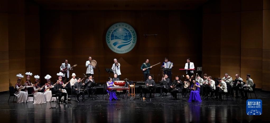 參演藝術(shù)家演奏中國(guó)民樂(lè)《喜洋洋》(2018年5月30日攝)。當(dāng)日,上海合作組織成員國(guó)藝術(shù)節(jié)在北京保利劇院開(kāi)幕。新華社記者 沈伯韓 攝