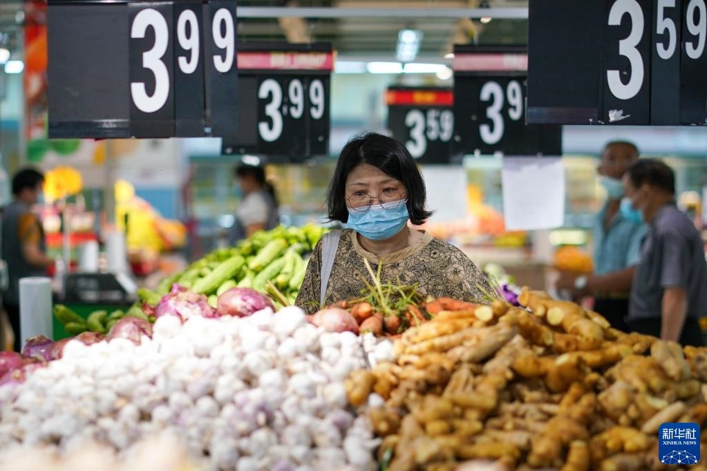 市民在江蘇省無(wú)錫市經(jīng)開(kāi)區(qū)華潤(rùn)萬(wàn)家超市購(gòu)物(2022年7月7日攝)。江蘇省無(wú)錫市在做好疫情防控的同時(shí),積極制定相關(guān)方案,制作城市保供地圖,組織大型商超、市場(chǎng)正常運(yùn)營(yíng),全力保供穩(wěn)價(jià),端穩(wěn)市民“菜籃子”。新華社記者李博攝