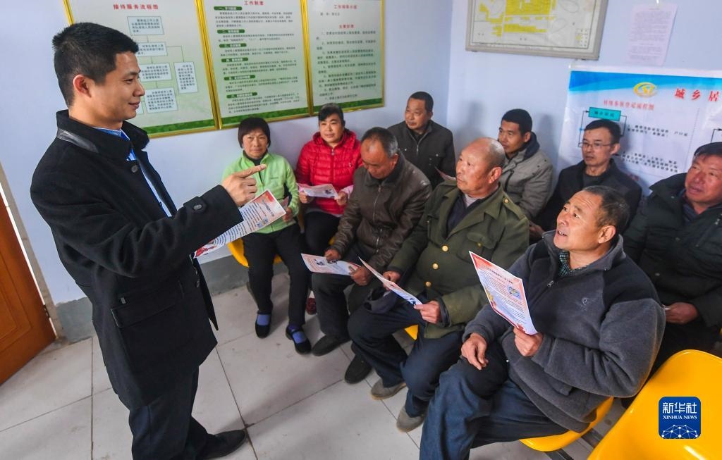 河北景縣紀(jì)檢監(jiān)察干部為杜橋鎮(zhèn)西徐莊村村民講解監(jiān)察法知識(shí)(2018年4月4日攝)。新華社記者 李曉果 攝