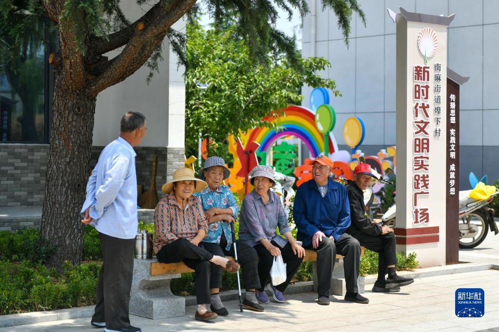 山東省沂源縣南麻街道埠下村村民在民生綜合體活動(dòng)廣場(chǎng)休息(2022年6月15日攝)。新華社記者 朱崢 攝
