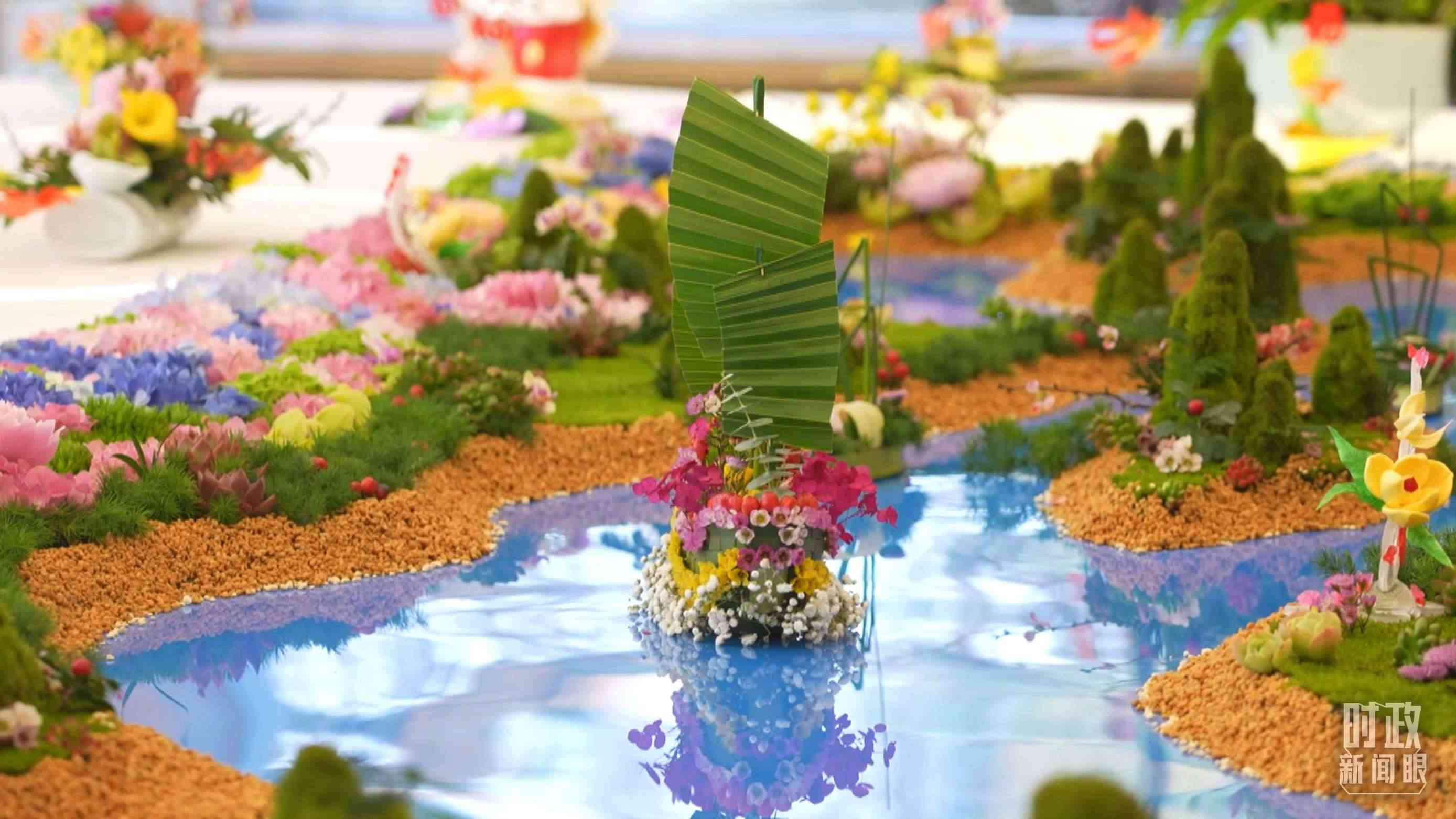 △2月10日會(huì)見結(jié)束后,習(xí)近平為洪森舉行了宴會(huì)。這是宴會(huì)現(xiàn)場(chǎng)的帆船造型。(總臺(tái)央視記者蔣碩拍攝)
