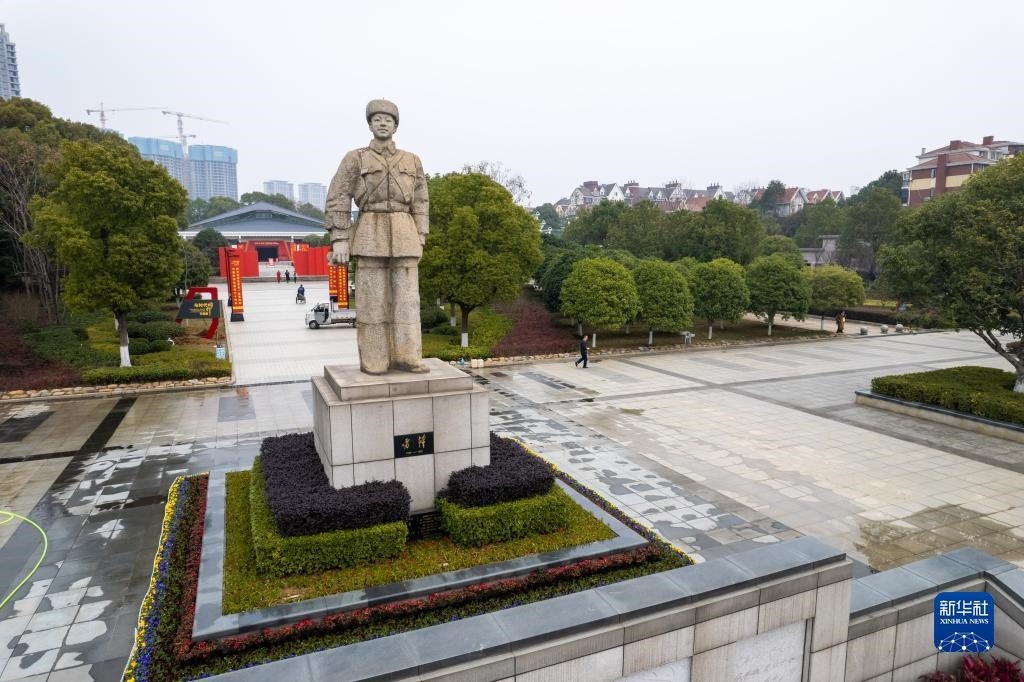 這是3月1日在湖南雷鋒紀(jì)念館拍攝的雷鋒雕塑(無人機(jī)照片)。新華社記者 陳思汗 攝