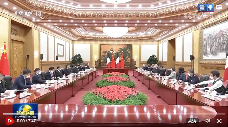 馬克龍表示,我對3年多前訪華情景記憶猶新,非常高興再次訪華,同習(xí)近平主席共同探討進(jìn)一步提升法中全面戰(zhàn)略伙伴關(guān)系。我完全贊同習(xí)近平主席對法中關(guān)系的積極評價(jià)以及就發(fā)展雙邊關(guān)系提出的重要建議。明年法中將共同慶祝建交60周年。60年來,法中關(guān)系保持了穩(wěn)定健康發(fā)展。雖然法中兩國發(fā)展模式不同,但雙方相互尊重,坦誠交流,各領(lǐng)域合作實(shí)現(xiàn)了互利互惠,同時(shí)在合作應(yīng)對當(dāng)今世界面臨的全球性挑戰(zhàn)方面取得重要進(jìn)展。法方尊重并奉行一個(gè)中國政策。我此次率龐大代表團(tuán)訪華,就是希望同中方加強(qiáng)合作,促進(jìn)人文交流。法方祝賀中方成功舉辦昆明-蒙特利爾《生物多樣性公約》第十五次締約方大會,希望繼續(xù)在氣候變化、糧食安全等問題上同中方密切溝通合作。中方將舉辦第三屆“一帶一路”國際合作高峰論壇,法方愿同中方就此開展合作。法方贊賞中方始終遵守聯(lián)合國憲章宗旨,為解決國際地區(qū)熱點(diǎn)問題發(fā)揮積極作用,期待同中方密切溝通協(xié)作,努力實(shí)現(xiàn)世界的持久和平與穩(wěn)定。