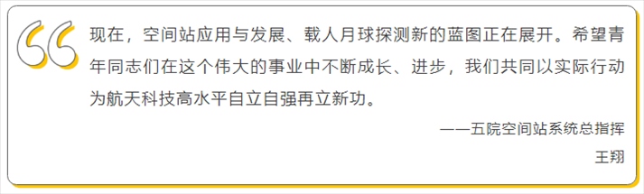 在空間站建造團隊青年的努力下,自2021年4月底天和核心艙發(fā)射以來,僅用19個月,空間站在軌組裝建造一氣呵成,中國“天宮”矗立云端。中國載人航天工程“三十而立”,我們用全勝的優(yōu)異戰(zhàn)績,在探索宇宙的新征程上跑出了中國航天“加速度”,讓遙不可及的夢想變成天地之間的現(xiàn)實。
