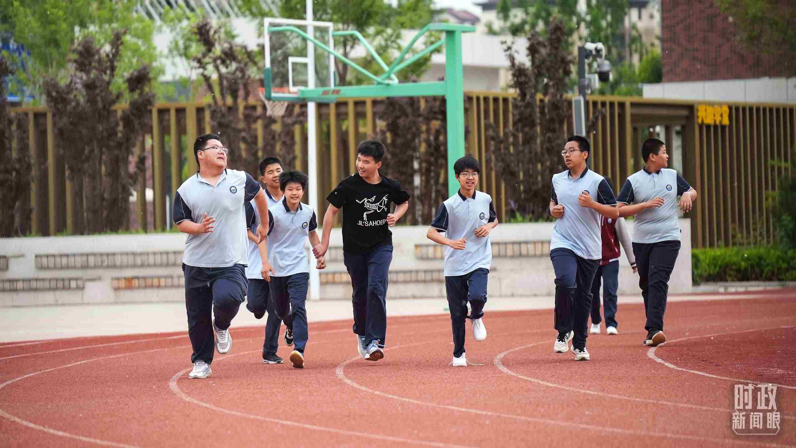 △容東安置區(qū)的雄安容和紅杰初級中學內,中學生在操場練習長跑。(總臺國廣記者李晉拍攝)