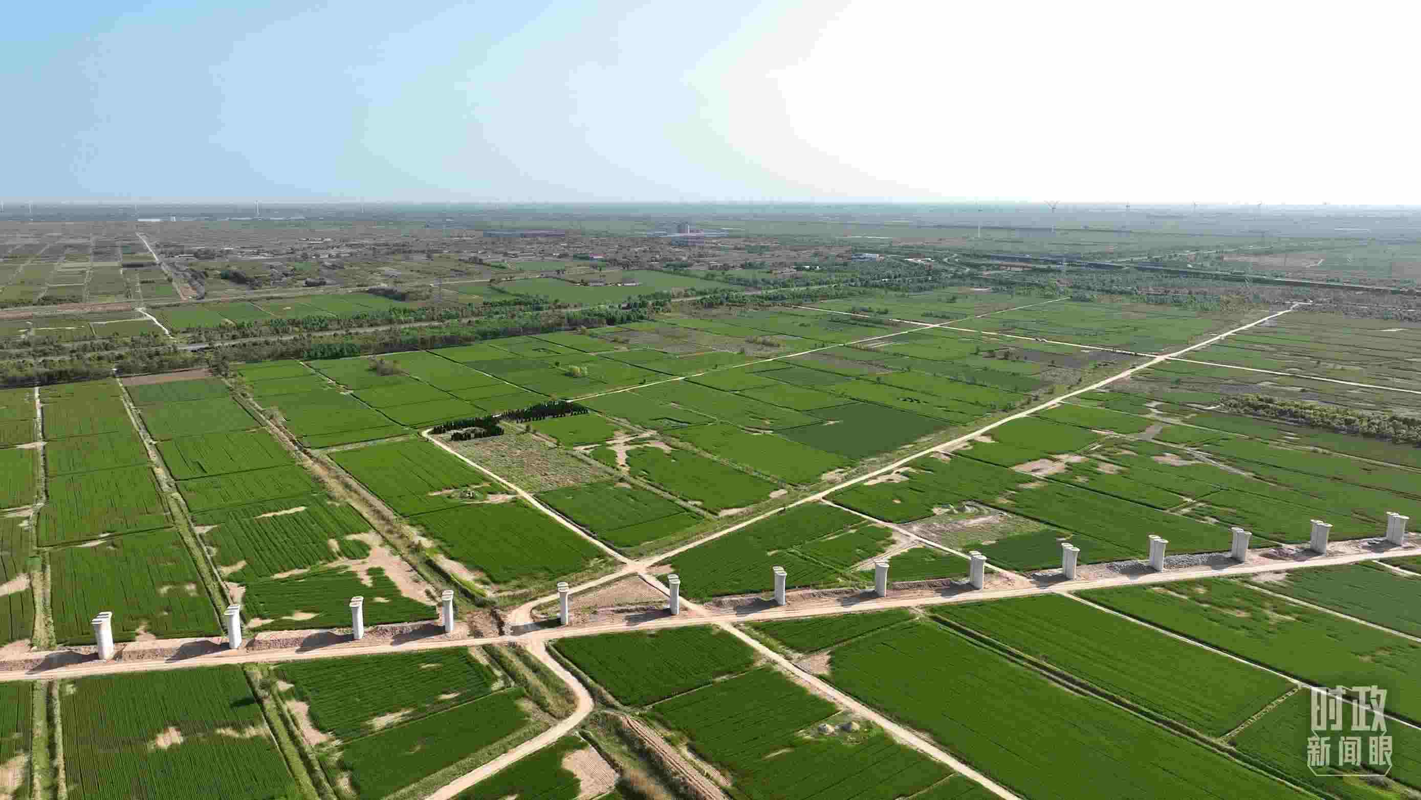 △俯瞰仙莊片區(qū)旱堿地麥田。(總臺記者郭永良拍攝)
