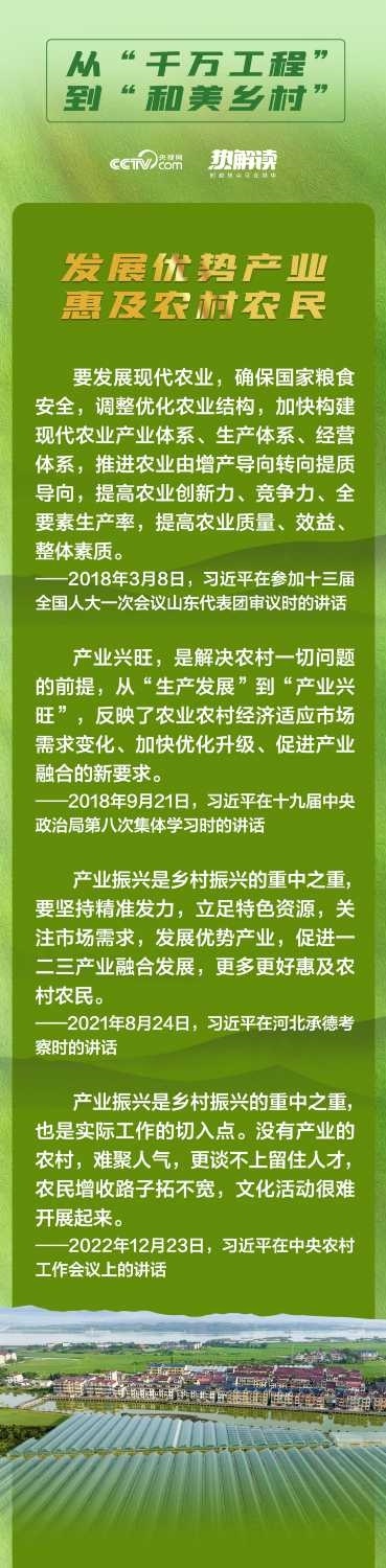 央視網(wǎng)《熱解讀》欄目特別策劃“從‘千萬工程’到‘和美鄉(xiāng)村’”系列解讀文章,緊扣鄉(xiāng)村振興戰(zhàn)略“產(chǎn)業(yè)興旺、生態(tài)宜居、鄉(xiāng)風(fēng)文明、治理有效、生活富裕”總要求,全面展現(xiàn)新時(shí)代中國多措并舉建設(shè)宜居宜業(yè)和美鄉(xiāng)村的生動實(shí)踐。