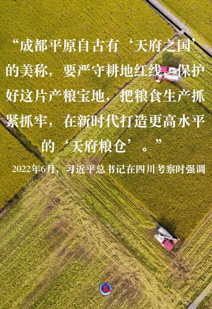 2022年6月,習(xí)近平總書記在四川考察時強(qiáng)調(diào),“成都平原自古有‘天府之國’的美稱,要嚴(yán)守耕地紅線,保護(hù)好這片產(chǎn)糧寶地,把糧食生產(chǎn)抓緊抓牢,在新時代打造更高水平的‘天府糧倉’”。
