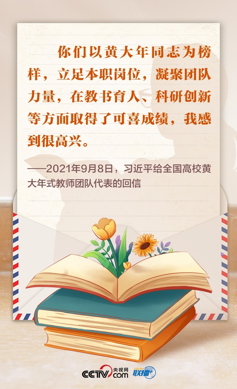 2021年,首批黃大年式教師團(tuán)隊(duì)的代表給總書記寫信,匯報(bào)教學(xué)、科研等工作情況,表達(dá)了堅(jiān)守教育報(bào)國理想、為民族復(fù)興貢獻(xiàn)力量的決心??倳浕匦趴隙舜蠹业墓ぷ鞒尚В銊?lì)大家繼續(xù)學(xué)習(xí)弘揚(yáng)黃大年同志等優(yōu)秀教師的高尚精神,立德修身,潛心治學(xué),開拓創(chuàng)新,真正把為學(xué)、為事、為人統(tǒng)一起來,當(dāng)好學(xué)生成長的引路人。