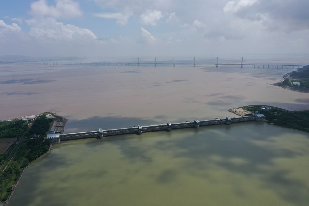 2023年8月4日拍攝的曹娥江大閘(無人機照片)。新華社記者 黃宗治 攝