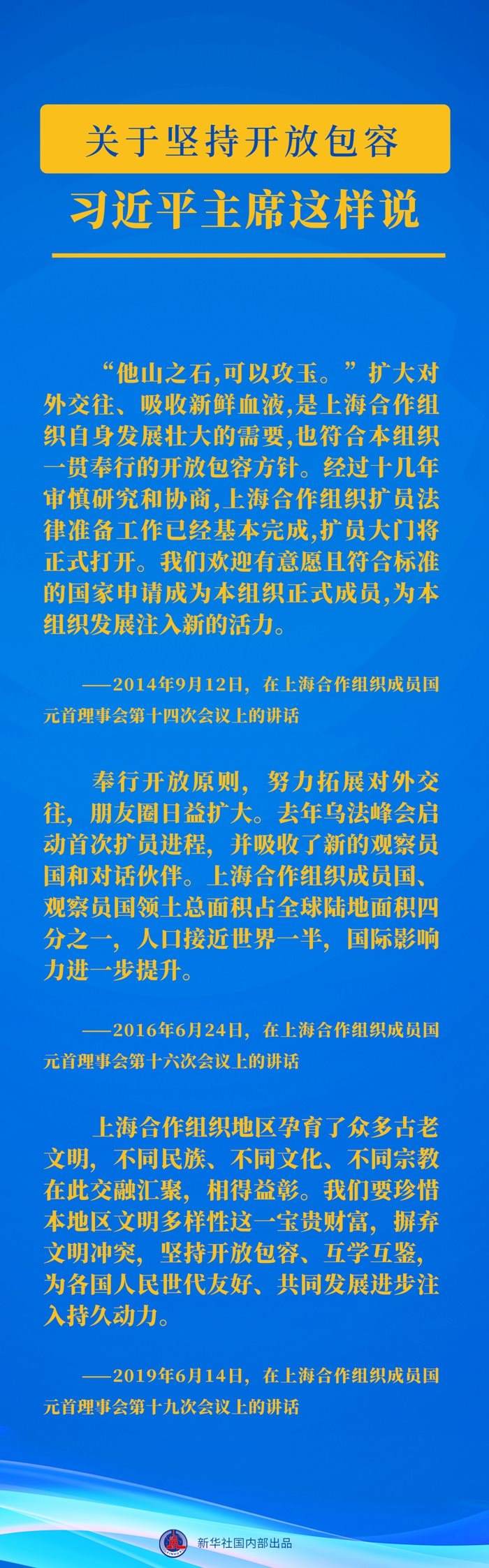 自2013年起,習(xí)近平主席已連續(xù)10年出席上合組織峰會并發(fā)表重要講話。習(xí)近平主席關(guān)于上合組織發(fā)展的這些重要論述,讓我們一起學(xué)習(xí)領(lǐng)悟↓