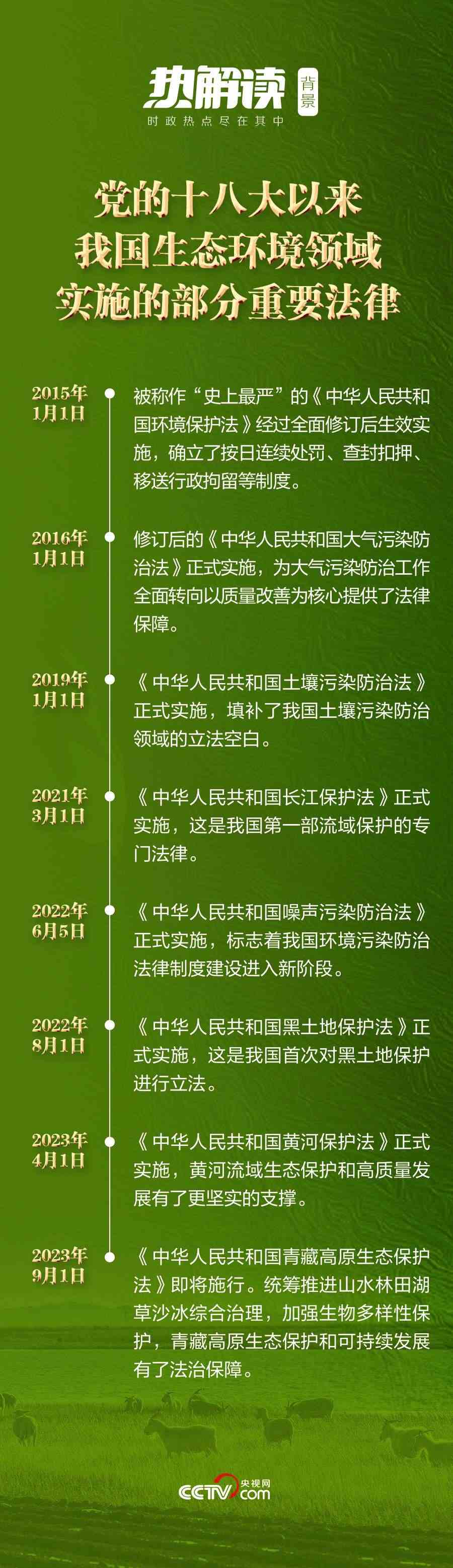 黨的十八大以來,越織越密的生態(tài)文明制度體系成為生態(tài)文明建設(shè)的有力保障。將“生態(tài)文明建設(shè)”寫入憲法,制定和修改長江保護(hù)法、土地管理法、森林法等,我國生態(tài)環(huán)境立法實(shí)現(xiàn)了從量到質(zhì)的全面提升。