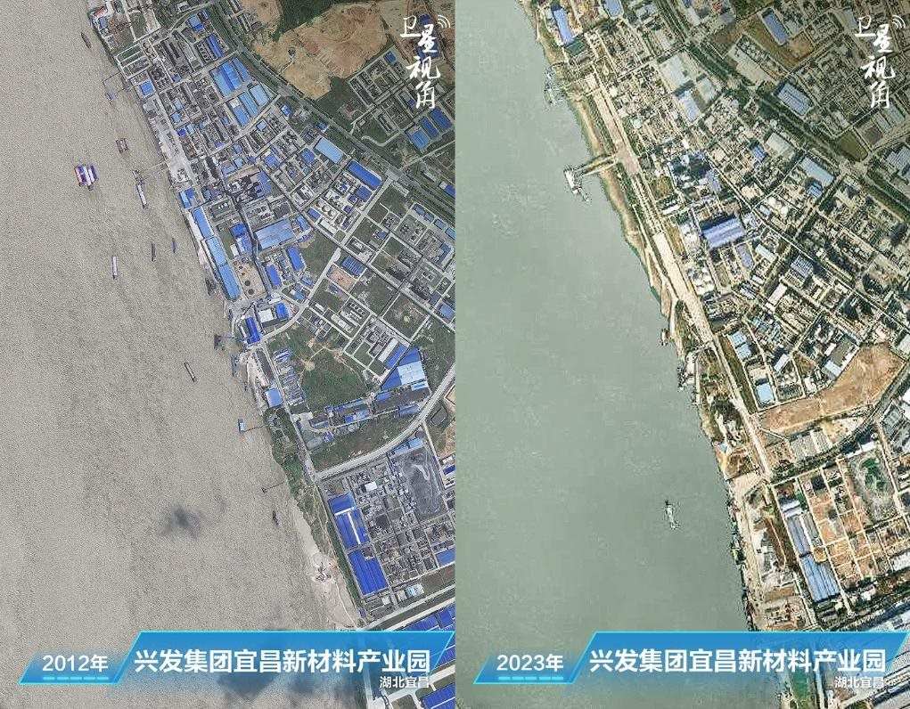 ↑2023年與2012年相比,興發(fā)集團宜昌新材料產(chǎn)業(yè)園內(nèi),原來臨江建設(shè)的生產(chǎn)設(shè)施已經(jīng)搬遷和拆除。