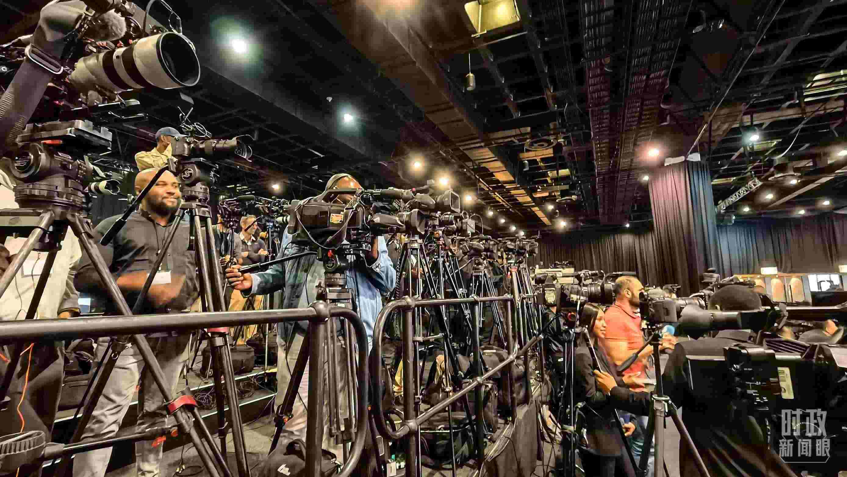 △特別記者會現(xiàn)場等候的各國記者。(總臺央視記者韓銳拍攝)