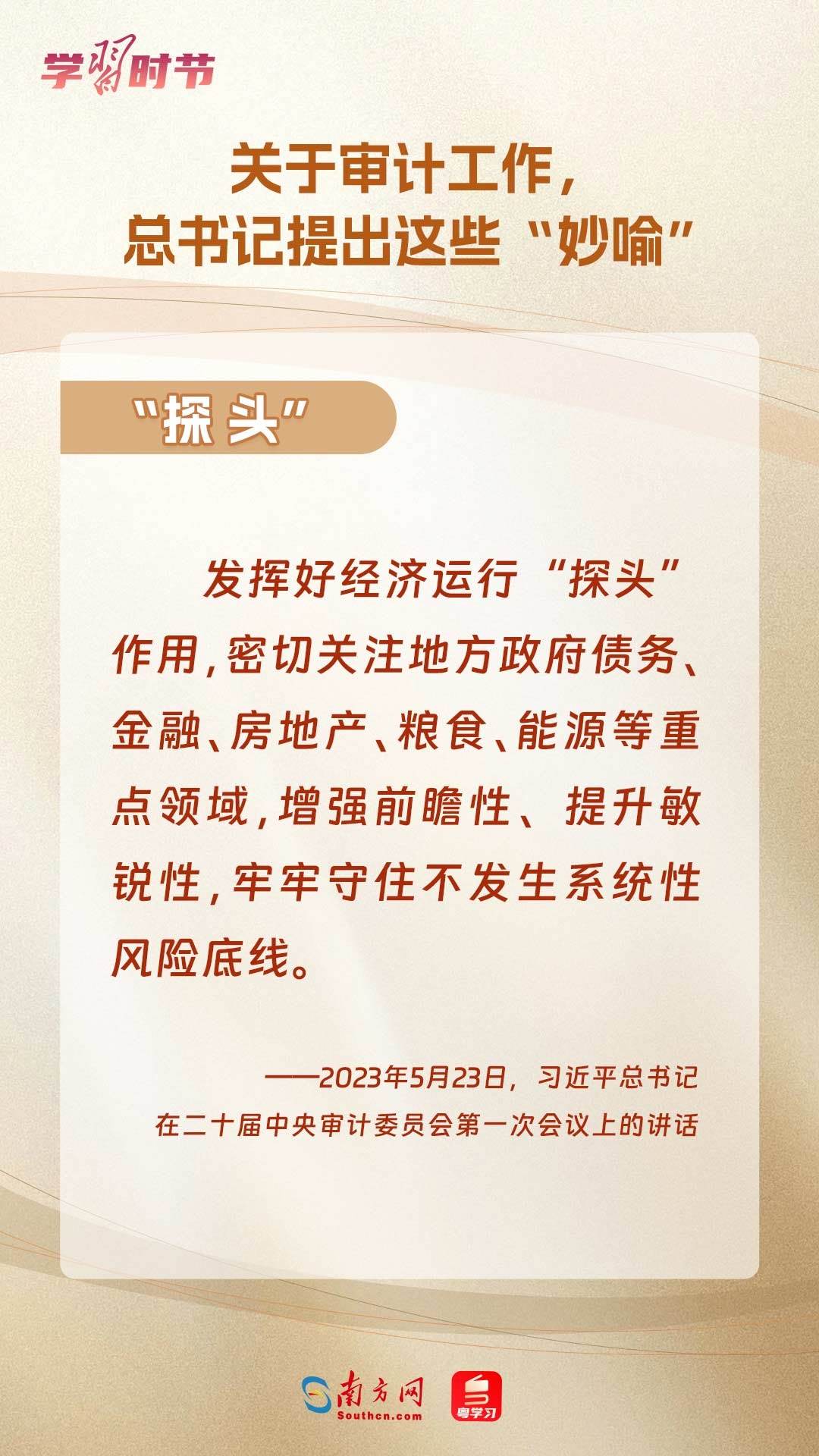 11月1日出版的《求是》雜志刊登了習(xí)近平總書記在二十屆中央審計(jì)委員會(huì)第一次會(huì)議上的講話全文??倳浽谥匾v話中“妙喻”審計(jì)工作,讓我們一同學(xué)習(xí)。