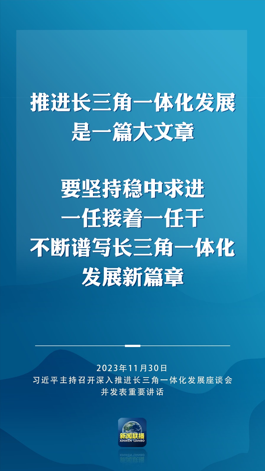 習(xí)近平強調(diào),要完整、準(zhǔn)確、全面貫徹新發(fā)展理念,緊扣一體化和高質(zhì)量這兩個關(guān)鍵詞,樹立全球視野和戰(zhàn)略思維,堅定不移深化改革、擴(kuò)大高水平開放,統(tǒng)籌科技創(chuàng)新和產(chǎn)業(yè)創(chuàng)新,統(tǒng)籌龍頭帶動和各揚所長,統(tǒng)籌硬件聯(lián)通和機制協(xié)同,統(tǒng)籌生態(tài)環(huán)保和經(jīng)濟(jì)發(fā)展,在推進(jìn)共同富裕上先行示范,在建設(shè)中華民族現(xiàn)代文明上積極探索,推動長三角一體化發(fā)展取得新的重大突破,在中國式現(xiàn)代化中走在前列,更好發(fā)揮先行探路、引領(lǐng)示范、輻射帶動作用。