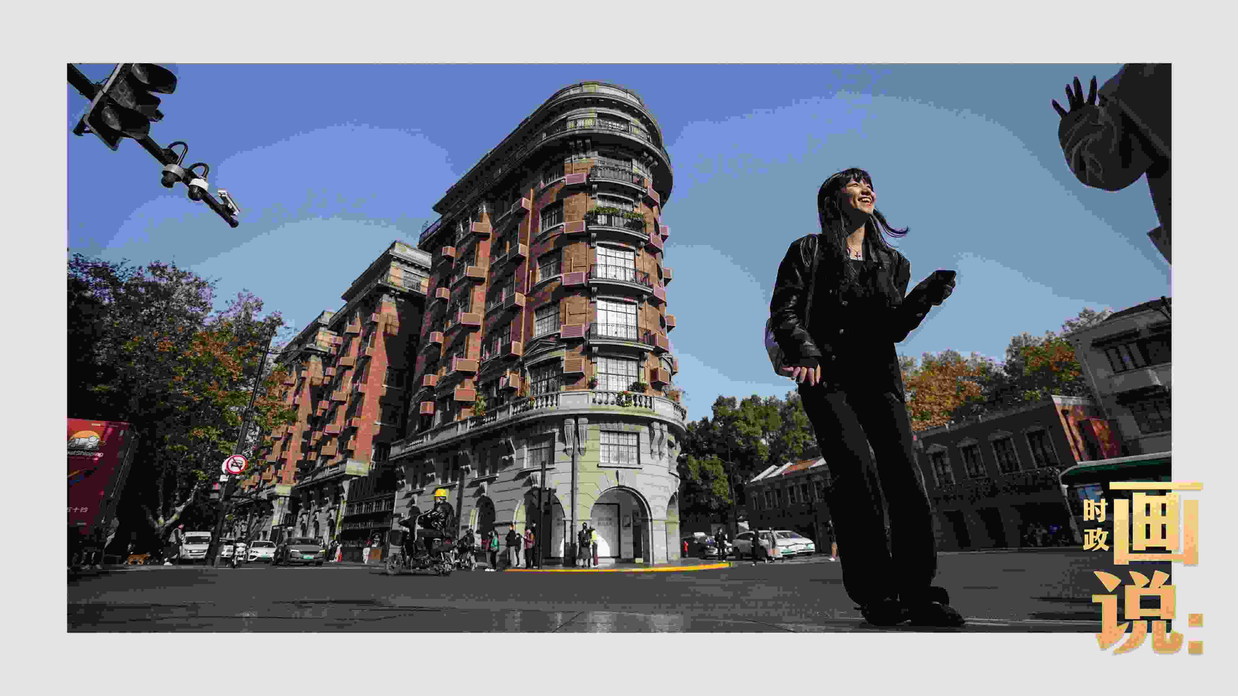 △武康大樓前留影的外籍游客興奮不已。淮海中路,上海。