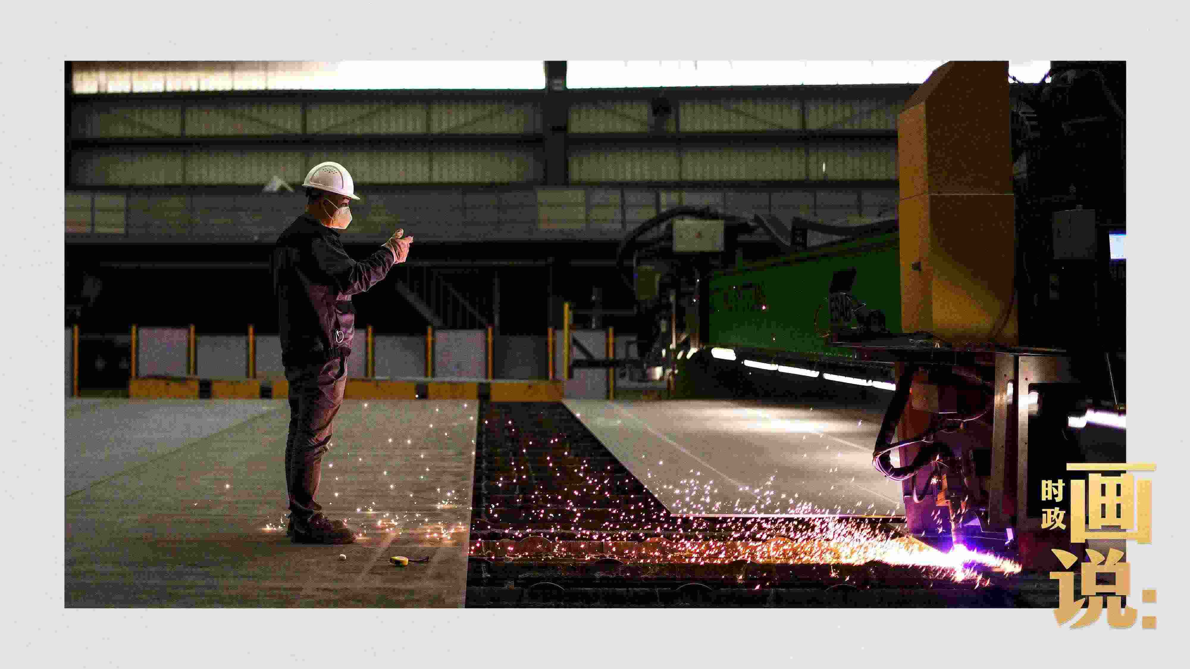△薄板智能生產(chǎn)中心內(nèi),激光切割機(jī)正在將特種鋼板加工成標(biāo)準(zhǔn)零件。浦東新區(qū),上海。