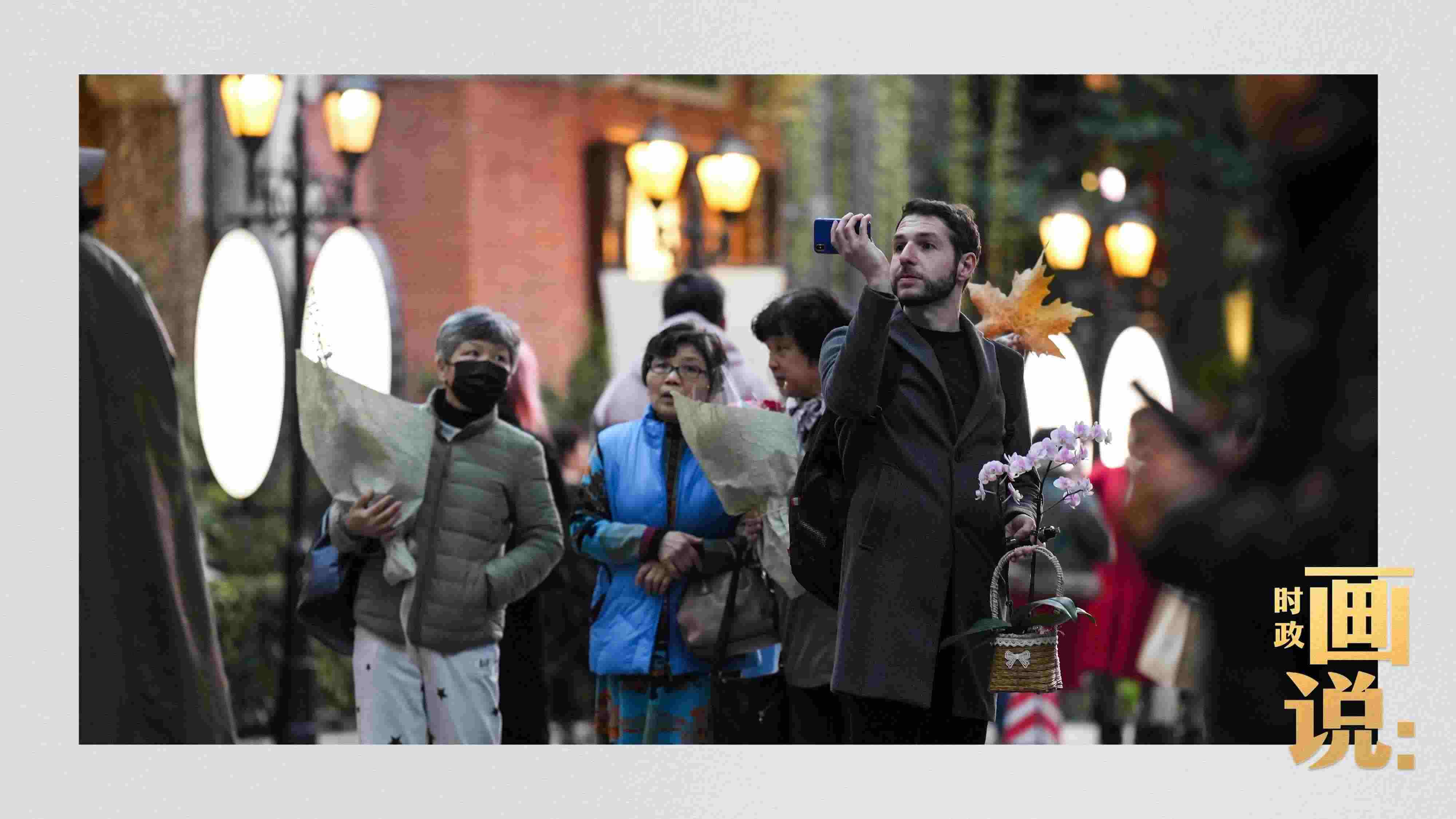 △路燈點(diǎn)亮?xí)r,上海外灘依然熙熙攘攘。