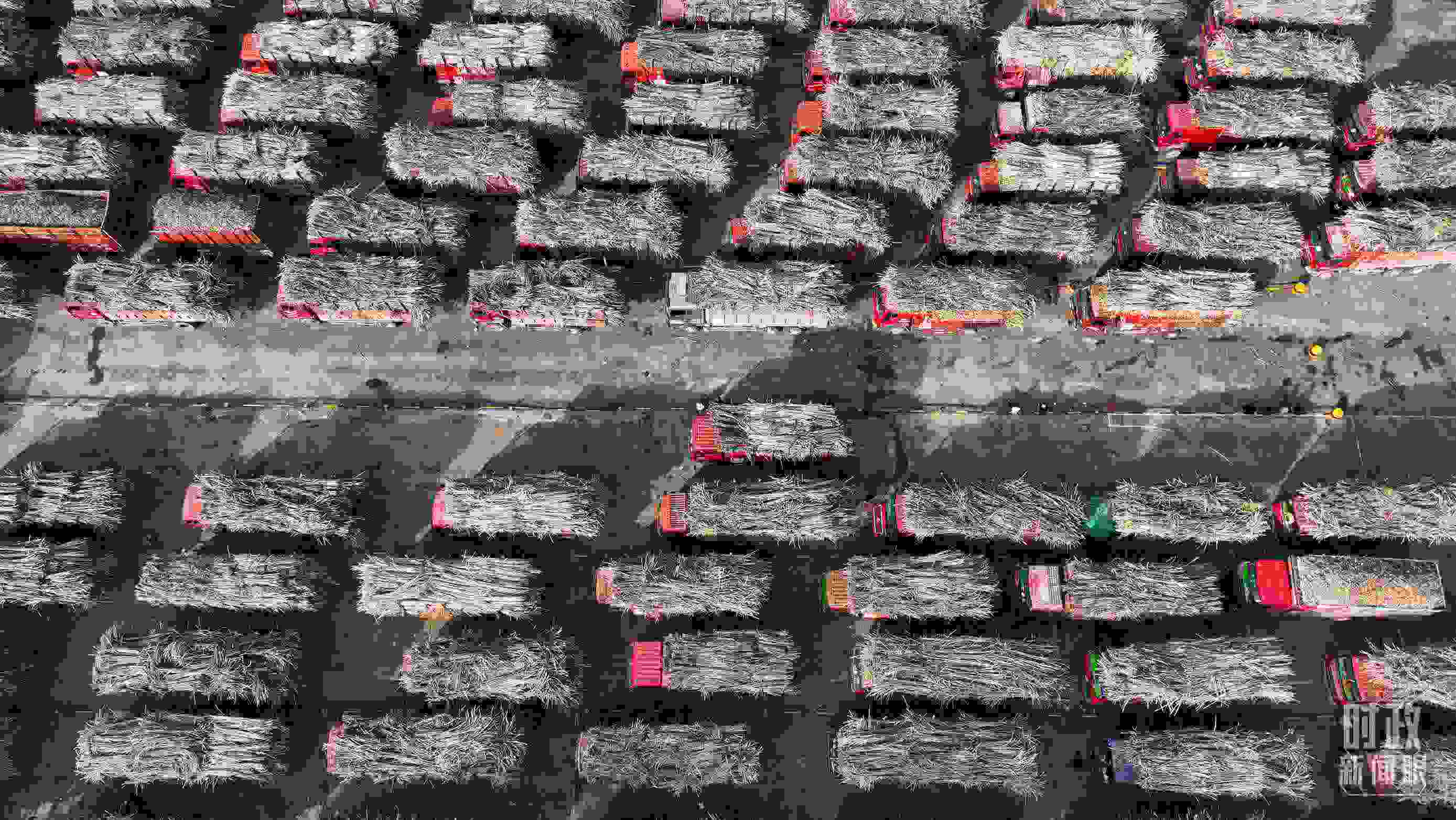 △來賓東糖鳳凰有限公司內(nèi)的甘蔗原料停放區(qū)。(總臺(tái)央視記者范凱拍攝)
