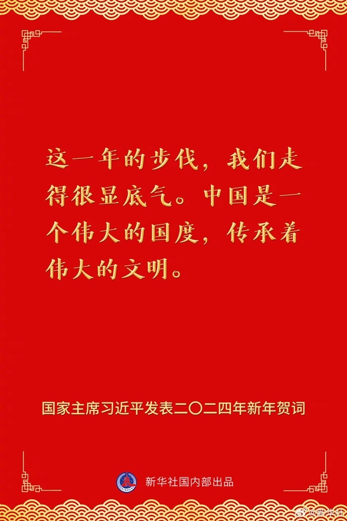 國家主席習(xí)近平發(fā)表二〇二四年新年賀詞,一起來看金句。