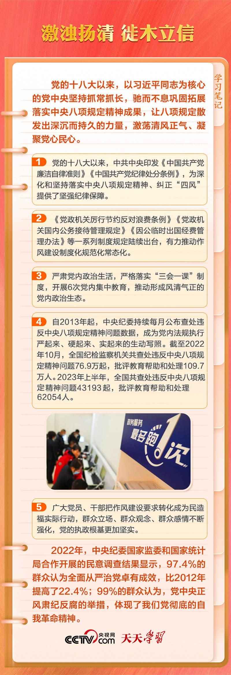 在二十屆中央紀(jì)委二次全會上,習(xí)近平總書記指出:“制定實(shí)施中央八項(xiàng)規(guī)定,是我們黨在新時(shí)代的徙木立信之舉,必須常抓不懈、久久為功,直至真正化風(fēng)成俗,以優(yōu)良黨風(fēng)引領(lǐng)社風(fēng)民風(fēng)。”