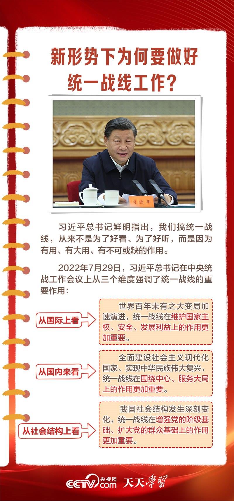 1月16日出版的第2期《求是》雜志發(fā)表了習近平總書記的重要文章《完整、準確、全面貫徹落實關于做好新時代黨的統(tǒng)一戰(zhàn)線工作的重要思想》,該文是習近平總書記2022年7月在中央統(tǒng)戰(zhàn)工作會議上講話的一部分。文章指出,統(tǒng)一戰(zhàn)線是黨克敵制勝、執(zhí)政興國的重要法寶,是團結海內(nèi)外全體中華兒女實現(xiàn)中華民族偉大復興的重要法寶,必須長期堅持。